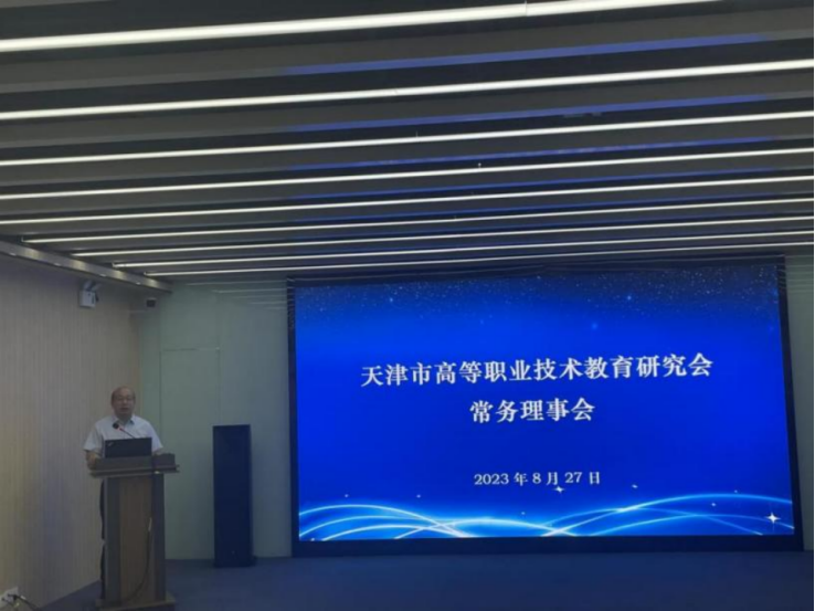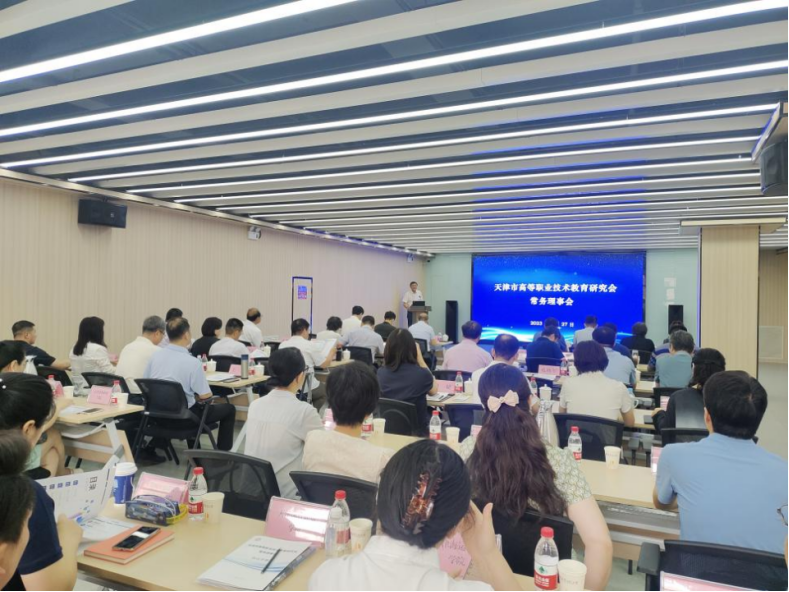 2023年8月27日,天津市高等职业技术教育研究会换届后首次常务理事会在津南区海棠众创大街运营服务中心C区路演大厅召开。天津市教育委员会副主任罗延安,天津市社会科学界联合会党组成员、一级巡视员阎峰,天津市教育委员会职业教育处处长李力,天津市社会科学界联合会社团组织部副部长许国斌,天津市教育科学研究院职业教育研究中心主任耿洁,研究会全体常务理事单位校领导和科研部门负责人等近60人参加了会议。会议由新利18平台党委书记、天津市高等职业技术教育研究会会长戴裕崴主持。