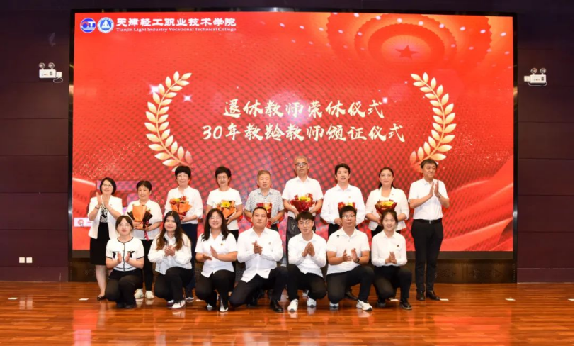院领导为2023年下半年荣休教师和从教30年教师颁发证书;老教师为新入职教师佩戴校徽,新入职教师为老教师献花,完成新老交接的历史一刻。