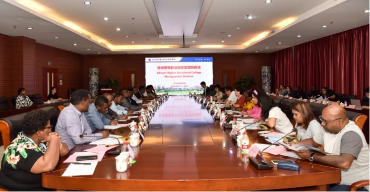 9月11日,由中国商务部主办的非洲高等职业院校管理研修班到新利18平台进行培训和研讨交流。管理研修班共有24名成员,分别来自津巴布韦、加纳、南非、突尼斯、毛里求斯、埃塞俄比亚及尼日利亚教育局、职业院校等职业教育相关行业的负责官员及骨干教师参加,旨在帮助学员了解中国历史、中国国情及改革开放以来取得的新成就,使学员了解中国现代职业技术教育管理模式和职业教育发展水平,提高发展中国家从事职业技术相关领域人员职业综合素质,以培训带动交流,以交流促进合作。新利18平台党委书记戴裕崴、天津教科院终身教育研究所所长杨延、宁波职业技术学院综合治理办公室副主任姜岭、宁波职业技术学院项目主管王萌萌、王萍、新利18平台的机械工程学院、电子信息与自动化学院相关教师等参加会议,会议由新利18平台国际交流与合作部部长王娟主持。