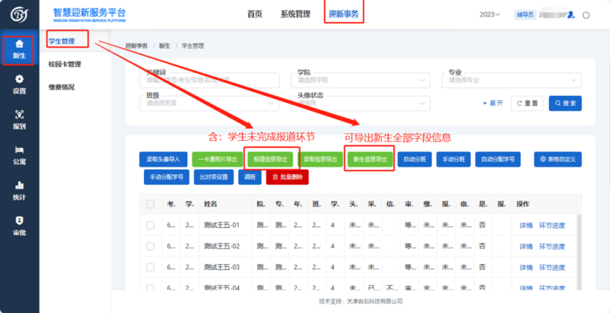 技术服务人员就“天津轻工职业技术学员智慧迎新服务平台”中涉及的录取确认、在线缴费、信息采集、现场报到等一系列新生入学环节进行全面介绍,为各环节的高效开展提供了信息化保障。