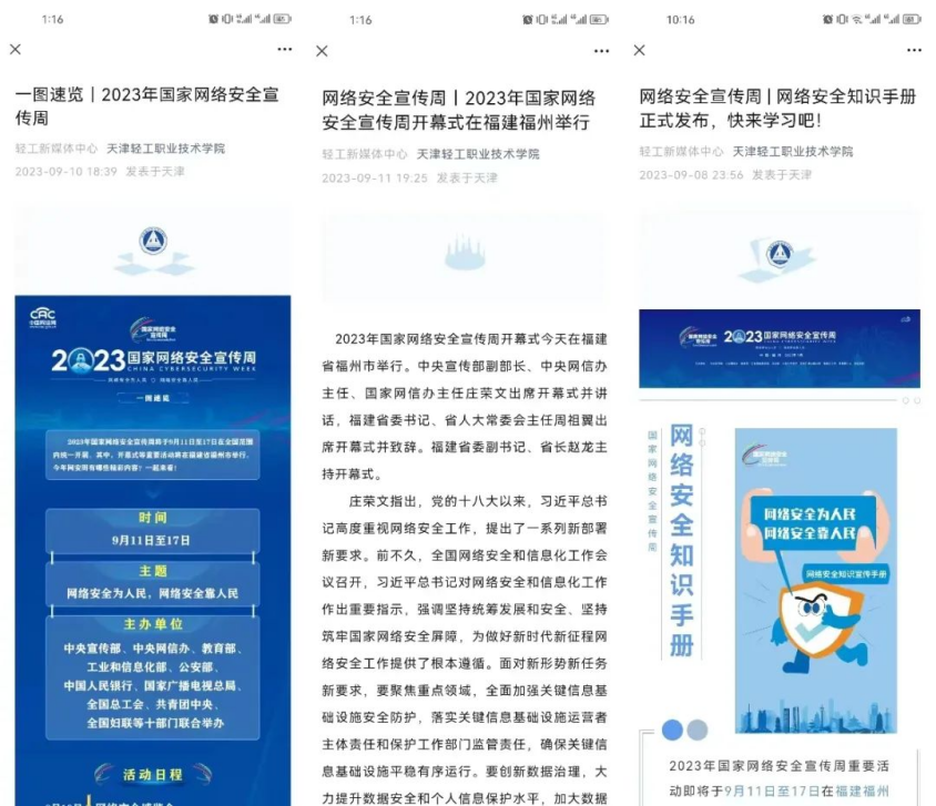 此次活动采取线上线下相结合的形式,通过在学院官方微信公众号上转发“国家网络安全宣传周”主题推文,详实列举了网络诈骗的典型方式及防范应对办法,同时配合线下校园网络安全宣传活动,科学有效地将网络安全意识植根于我院师生心中,教育引导广大师生共同当好国家信息安全的守护者。