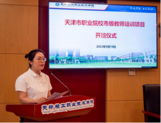 李云梅院长在致辞中首先对天津市各职业院校参训的老师表示欢迎,作为承训单位,学校对标培训项目要求,精心设计培训内容,组建了高水平、结构化专家团队。作为多年承办国培项目的院校,轻工学院有着丰富的培训资源和培训经验,希望各位学员在本次培训中能够学有所获、学有所用,切实提高教育教学水平和创新能力。