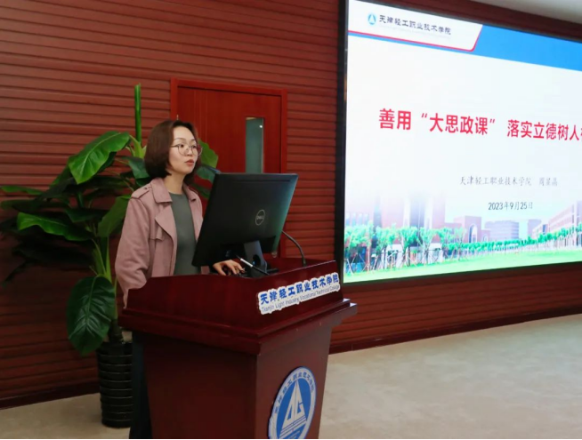 马克思主义学院党支部副书记周显晶作题为《善用“大思政课”落实立德树人根本任务》的专题报告,分别从坚持立德树人的基本要求、新时代“大思政课”基本内涵及善用大思政课创新思政育人格局三方面内容来分享。