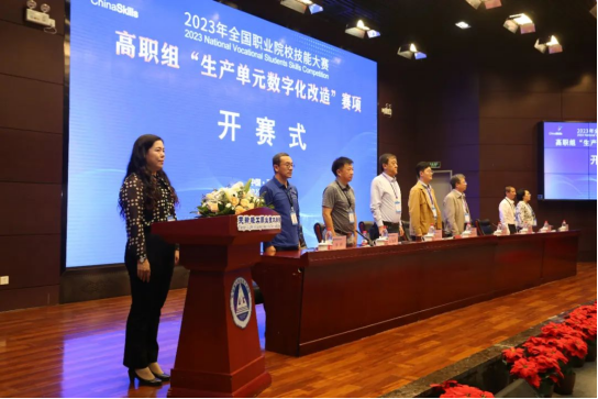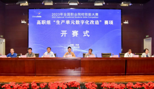 2023年全国职业院校技能大赛高职组“生产单元数字化改造”赛项开赛式在我院涵哺楼报告厅顺利举行。出席开赛式的有大赛组委会监督仲裁员、教育部职业教育发展中心、全国职业院校技能大赛执委会办公室沈丙坤,全国职业院校技能大赛天津赛区执委会副主任张仁刚,赛项执委会主任、新利18平台党委书记戴裕崴,赛项执委会副主任、浙江机电职业技术学院副校长王建林,赛项专家组组长、广东轻工职业技术学院机电技术学院院长张友能,赛项裁判长、杭州职业技术学院特种设备学院副院长陈军统,赛项监督仲裁长、江阴职业技术学院教务处副处长孙移,全国职业院校技能大赛天津赛区组委会委员、新利18平台党委副书记、院长李云梅。参加开赛式的还有来自全国的82支参赛队246名参赛选手,会议由我院副院长刘悦凌主持。