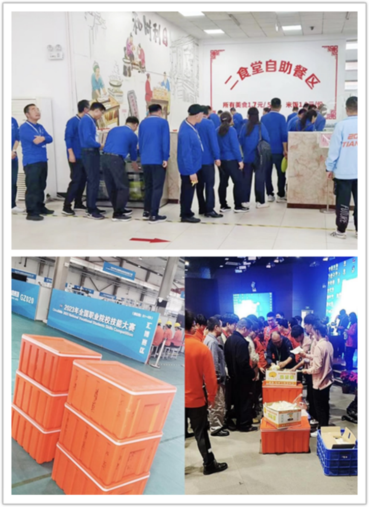 在餐饮服务方面,制定工作预案,全力做好食品安全工作。保障了赛前入校的四十余人次大赛裁判的用餐工作。并在比赛当天为参赛选手、指导教师、领队、专家、裁判、监督、仲裁、志愿者等相关工作人员提供午餐及晚餐餐食,独立配餐达到620-650人次。对配餐方式、供餐时间、供餐数量、应急储备餐数量、人力保障、就餐后卫生清洁等每一个环节都严格把关,顺利完成餐饮供应服务。