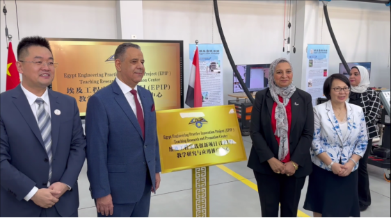 陈杰副部长听取了鲁班工坊品牌核心要义、工程实践创新项目(EPIP)教学模式推广应用、埃及鲁班工坊建设成效等方面介绍,并考察了工坊数控设备应用与维修技术、新能源应用技术和汽车运用与维修技术等专业实训室。
