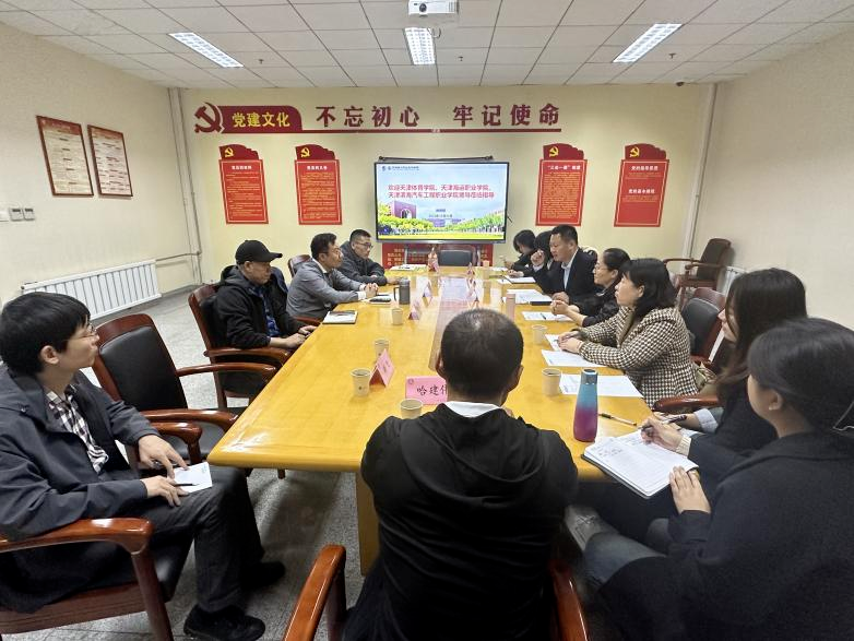 为贯彻落实中共中央办公厅、国务院办公厅《关于全面加强和改进新时代学校体育教育工作》,中共天津市委办公厅、天津市人民政府办公厅关于印发《天津市全面加强和改进新时代学校体育工作的若干措施》等文件精神,学院高度重视体育教育工作,并积极探索适合学院发展特色的体育教育模式。10月31日,学院邀请天津体育学院、天津海运职业学院、天津滨海汽车工程职业学院的专家同仁共谋共研,在学科建设、场馆建设、训练竞赛、学生培养等方面开展交流研讨。我院教务部副部长李悦首先介绍了学院的办学概况,专业特色以及体育教育教学的开展情况,同时对学院教师日常体育锻炼、学生体育活动及各类大赛前体能训练的需求情况进行了交流沟通,并希望通过此次合作,探索出具有专业特色的体能锻炼活动形式和针对职业病干预的处方。体育教研室主任张法祯详细汇报了学院体育教育的开展情况以及近几年学生体育项目获奖情况,并提出了未来学院体育发展的想法和思路。机械工程学院教师史清卫,电子信息与自动化学院教师谢飞分别从自身专业的赛项和教学角度,提出大赛期间学生体能状况以及心理疏导中出现的一些问题,并希望通过此次交流能够找到有效提升参赛学生的体质和心理素质水平的方法。
