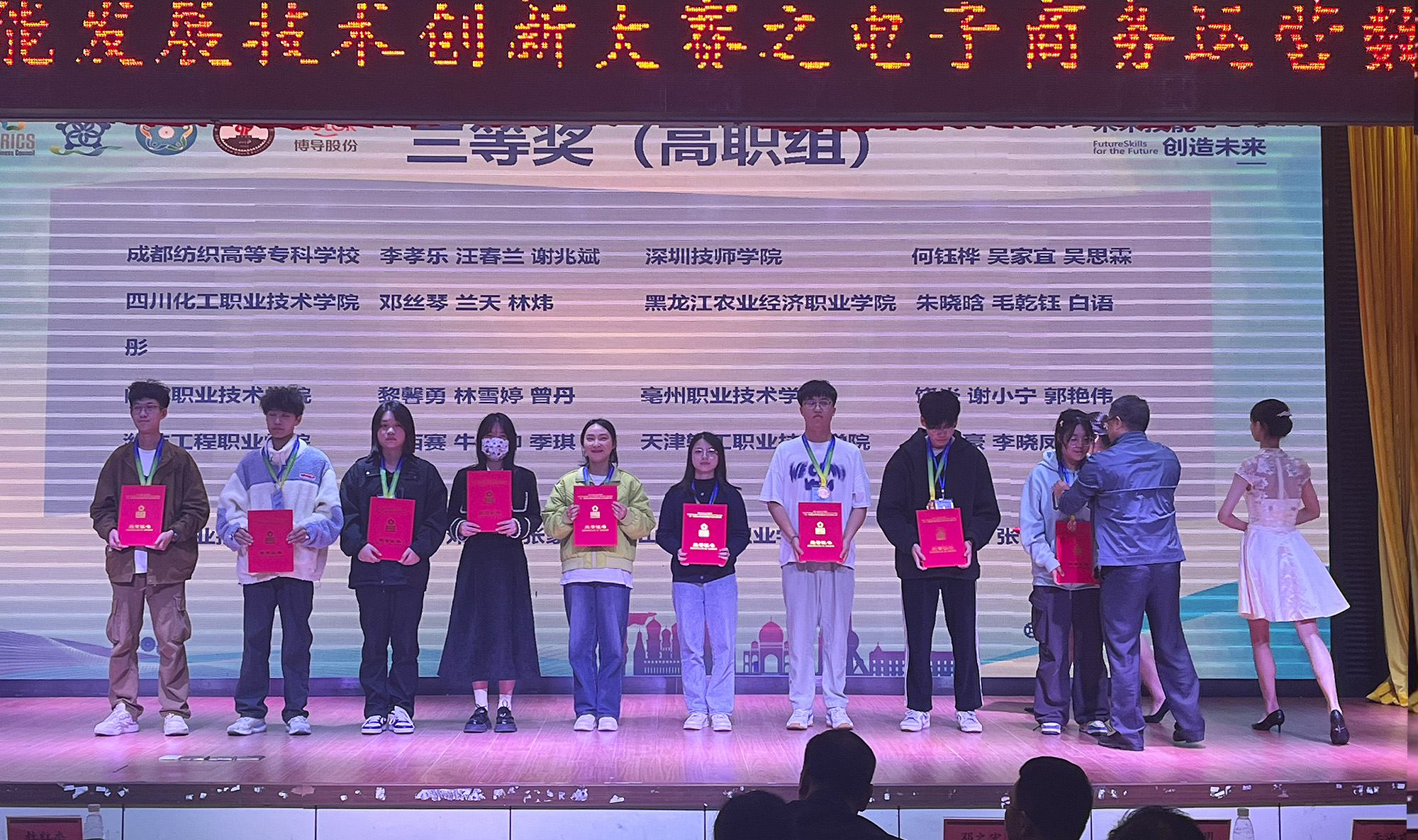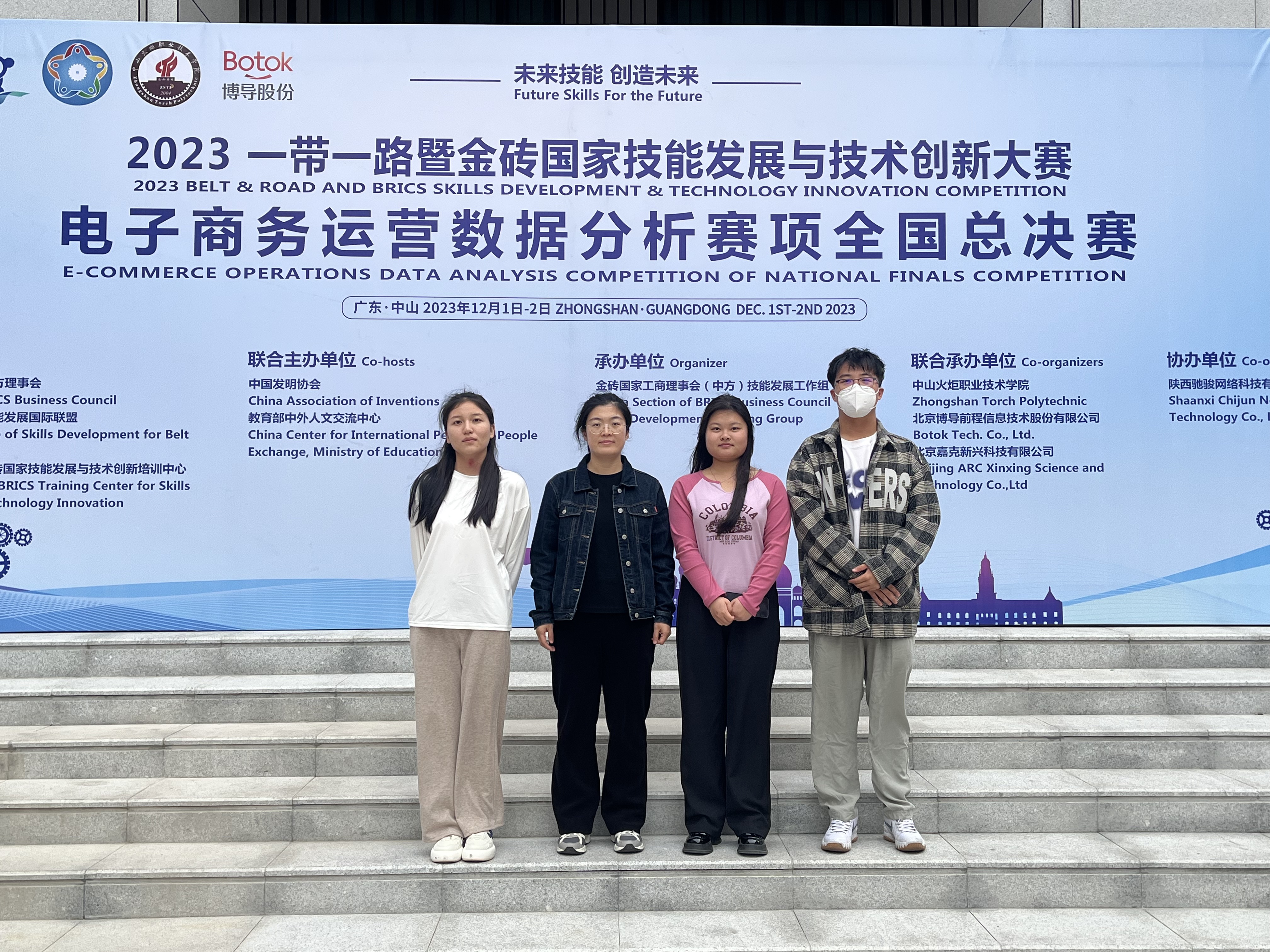 近日,2023一带一路暨金砖国家技能发展与技术创新大赛之电子商务运营数据分析赛项全国总决赛在广东中山成功举办,此次在预选赛177所院校333支队伍中选拔出的88支队伍参加了全国总决赛。经过激烈地竞争,我院2022级贺子豪、李晓凤、谢晨晨3位同学,荣获电子商务运营数据分析赛项高职组全国三等奖,让我们的新专业首次登上国奖领奖台。