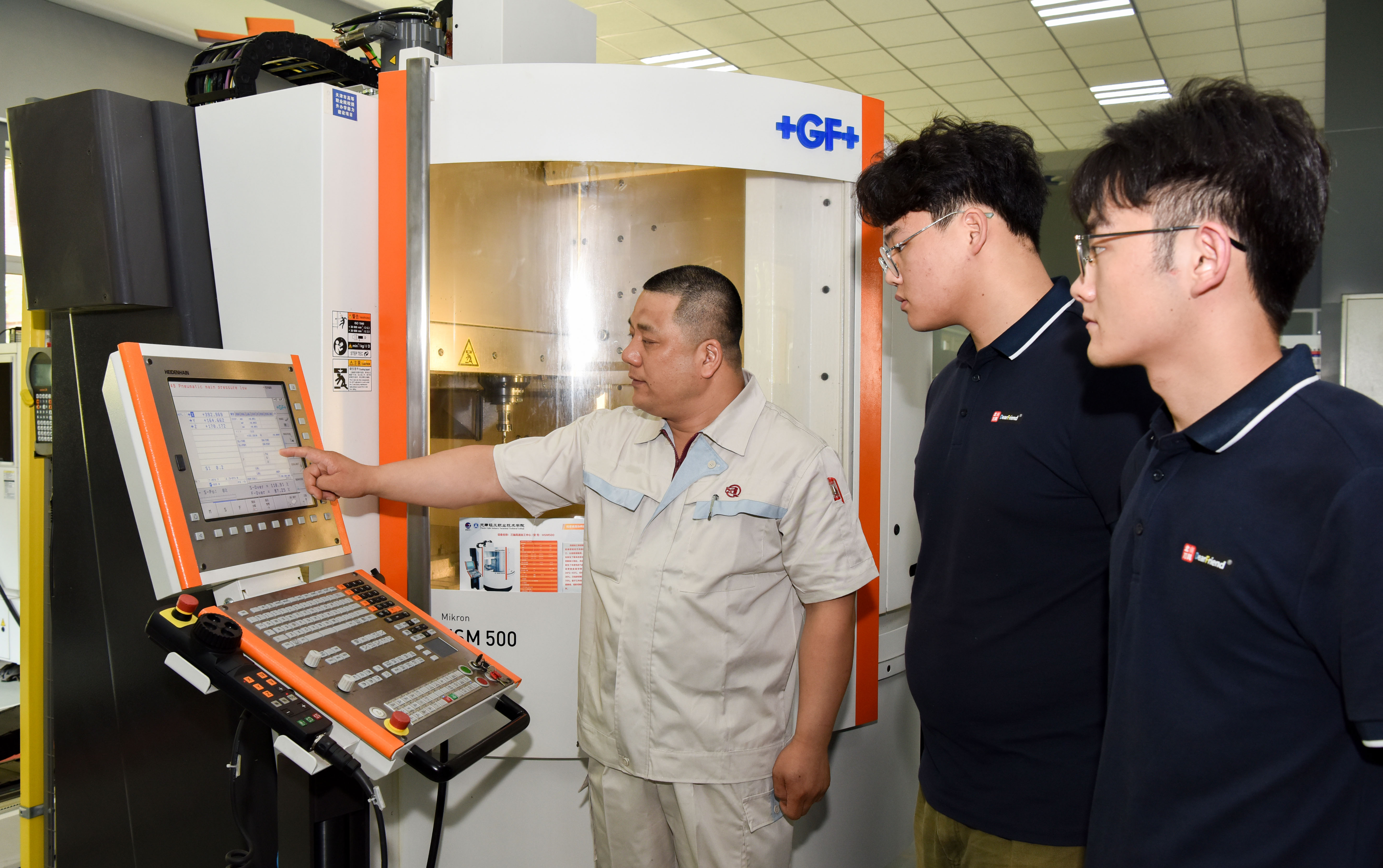 企业师傅在精密模具协同创新中心指导学生高速精密加工