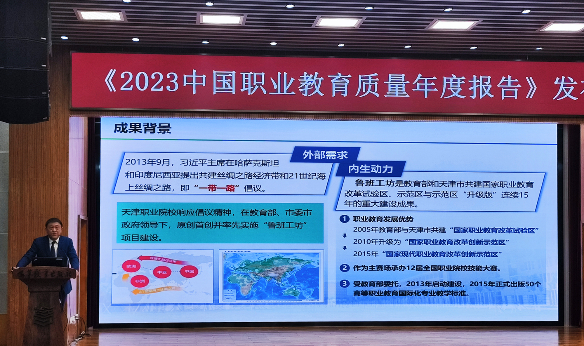 学院党委书记戴裕崴受邀参加本次发布会,并作题为《教随产出 校企同行》的案例分享,主要介绍学院近年来在鲁班工坊服务国家“一带一路”建设,以及为合作国培养适应本土经济发展的技术技能人才等方面所发挥的重要作用。
