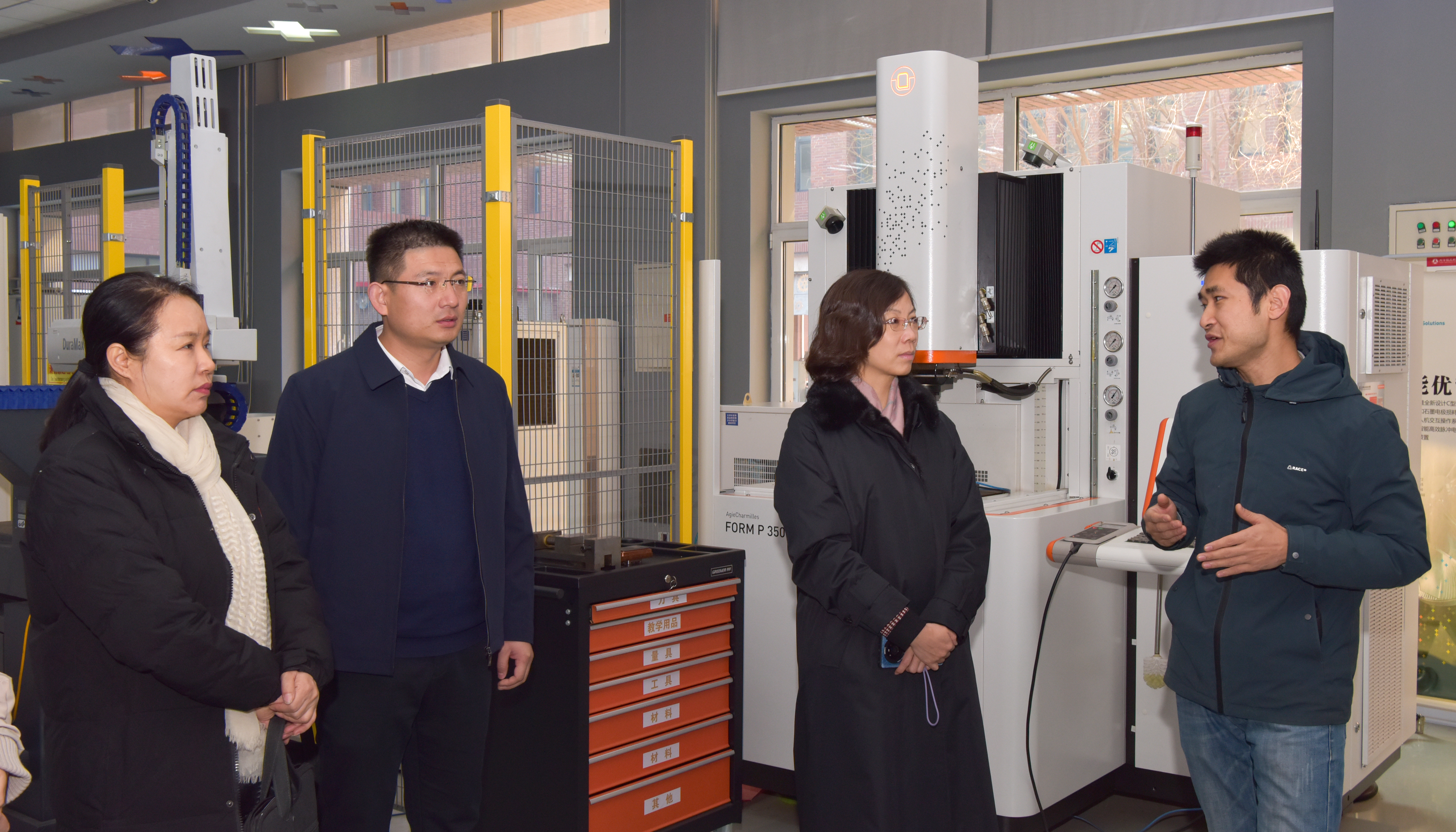 随后,调研组一行考察了精密模具协同创新中心、精密测量实训室、国家技能大师工作室等功能区,系统了解了精密模具智能制造示范生产线的操作流程,以及超高精度激光纹理加工中心、工业CT等特种加工和检测设备的整体运作情况。