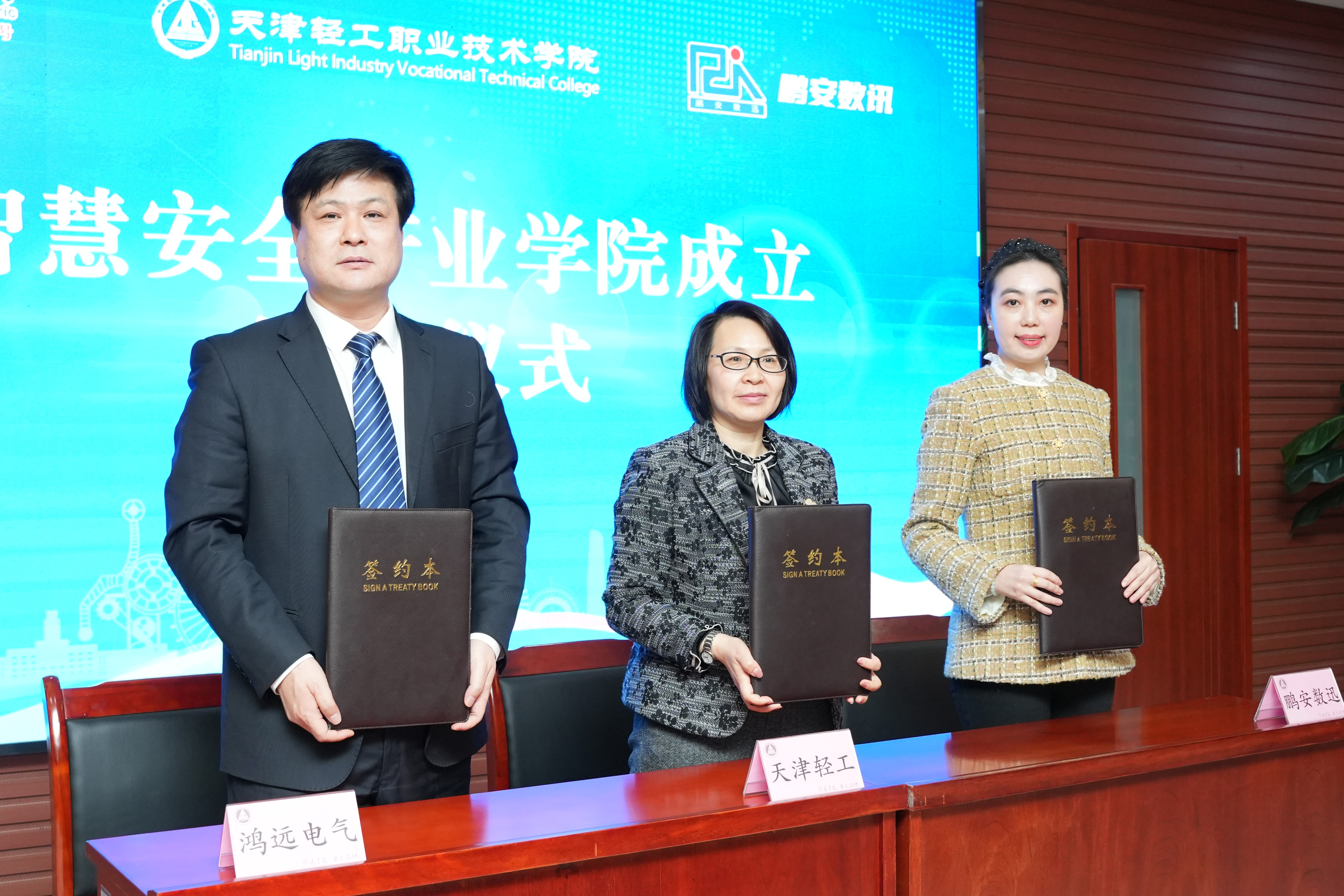 1月31日,由新利18平台、天津市鸿远电气股份有限公司、天津鹏安数迅科技有限公司共同组建的智慧安全产业学院成立大会暨揭牌仪式在新利18平台第一会议室举行。智慧安全产业学院的揭牌启运,是深入贯彻党的二十大精神,瞄准国家安全装备产业链条,以国家和区域产业发展急需为牵引,校企协同培养适应和引领现代智慧安全管理产业发展的高素质技术技能型人才迈出的重要一步,激发了办学活力,是混合所有制办学的又一探索与实践。
