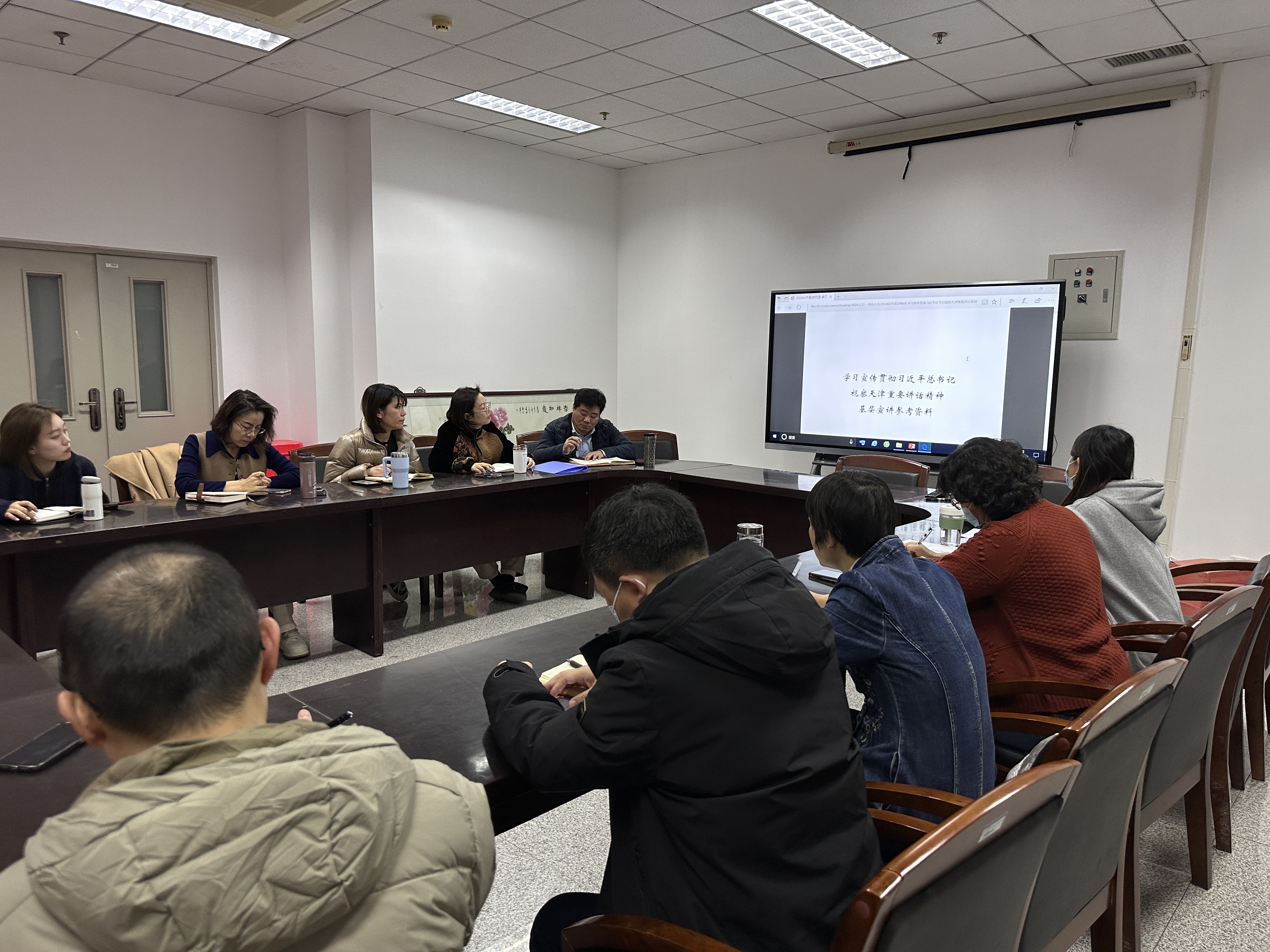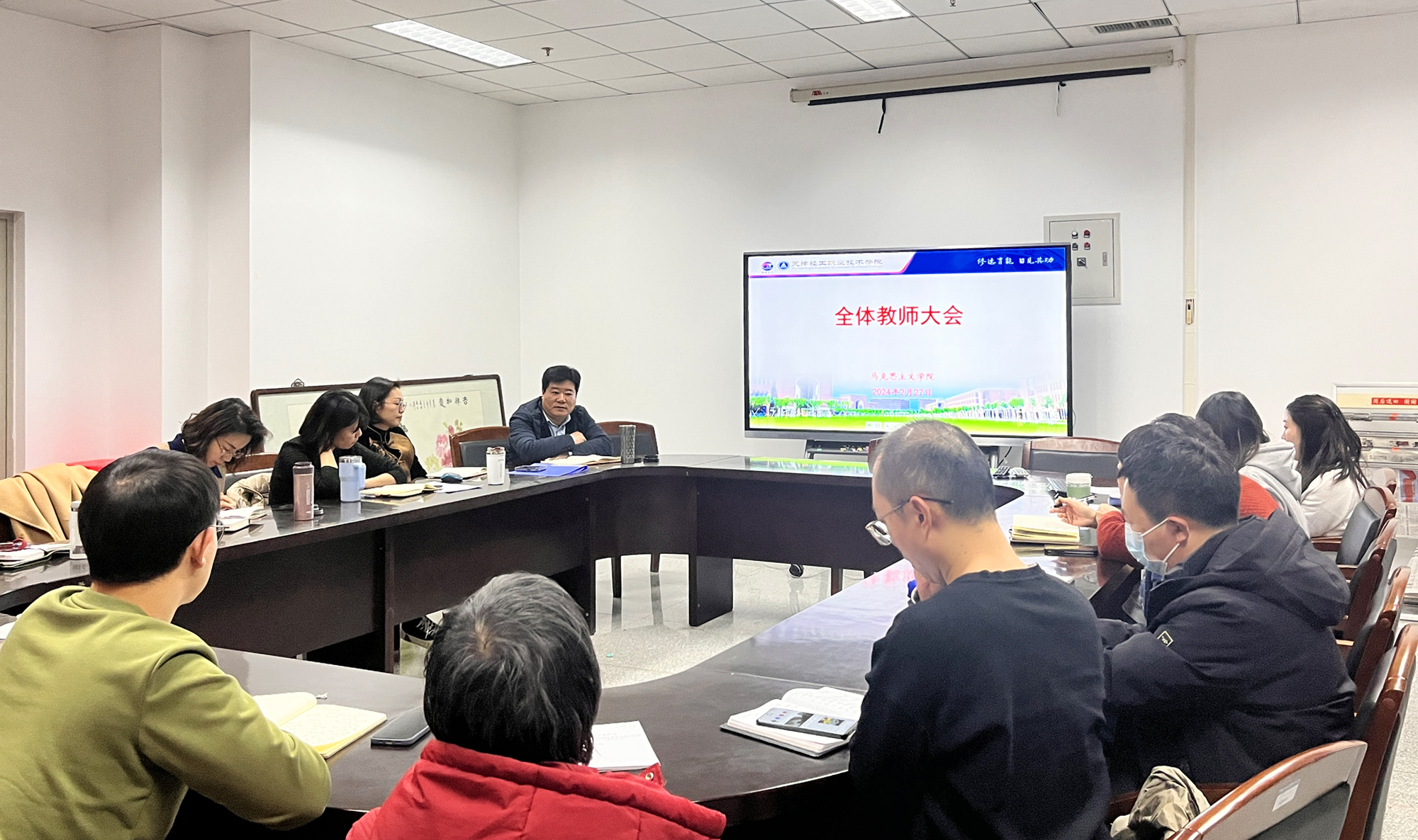 2月27日,马克思主义学院在涵哺楼七会议室召开2024年春季学期党员大会暨全体教师大会,学习习近平总书记视察天津重要讲话精神,传达落实市教育两委和学院的各项工作并对2024年马克思主义学院的重点工作进行部署。学院副院长兼马克思主义学院党支部书记、院长郑文柱主持会议。会议伊始,党支部副书记周显晶带领全体党员学习习近平总书记视察天津重要讲话精神,传达部署《关于教育系统广泛开展“牢记嘱托勇担使命”习近平总书记视察天津重要讲话精神基层宣讲活动的通知》,要求全体党员充分认识学习宣传贯彻习近平总书记重要讲话精神的重大意义,深刻领会把握习近平总书记重要讲话精神的精髓要义和实践要求,原原本本学、带着责任学,真正做到心领神会、融会贯通。全体教师要充分发挥思政课主渠道作用,围绕“四个善作善成”开展集体备课、宣讲培训、交流研讨等活动,提升理论宣讲水平。会议传达了市教育两委、学院近期文件通知,围绕意识形态、安全稳定工作、市教委教育工作要点、学生思政工作要点以及开学季系列活动等工作部署,号召全体教师主动谋划、提前筹备,凝心聚力,切实承担好铸魂育人的时代责任,为建设教育强国贡献思政课教师应有的力量。