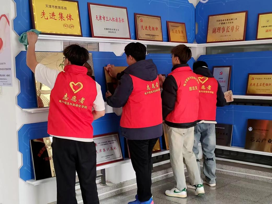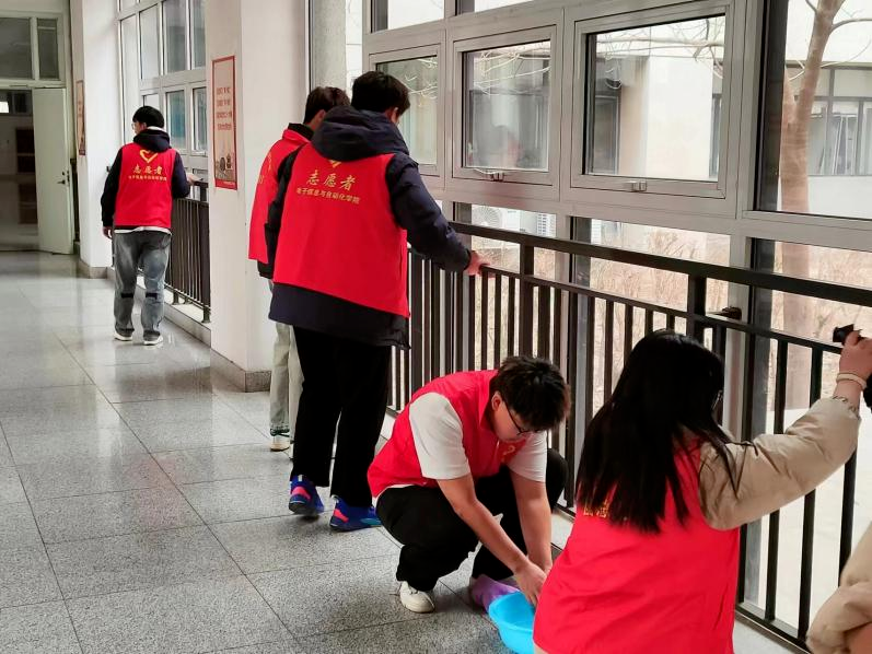 电子信息与自动化学院学生利用课余时间清扫教学楼和校园,用实际行动推动学雷锋在青年大学生群体中蔚然成风。活动中,志愿者们分工协作、兵分两路,一路由团总支带队负责清扫教学楼天井,擦拭一楼大厅及连廊的玻璃、围栏和宣传展板;另一路由学生会带队清扫校园内垃圾,捡拾道路上的烟头、果皮纸屑和枯枝落叶。志愿者们分工明确、积极投入,井然有序地完成了清理教学区域、检查桌椅破损情况、清扫校园垃圾等一系列工作。