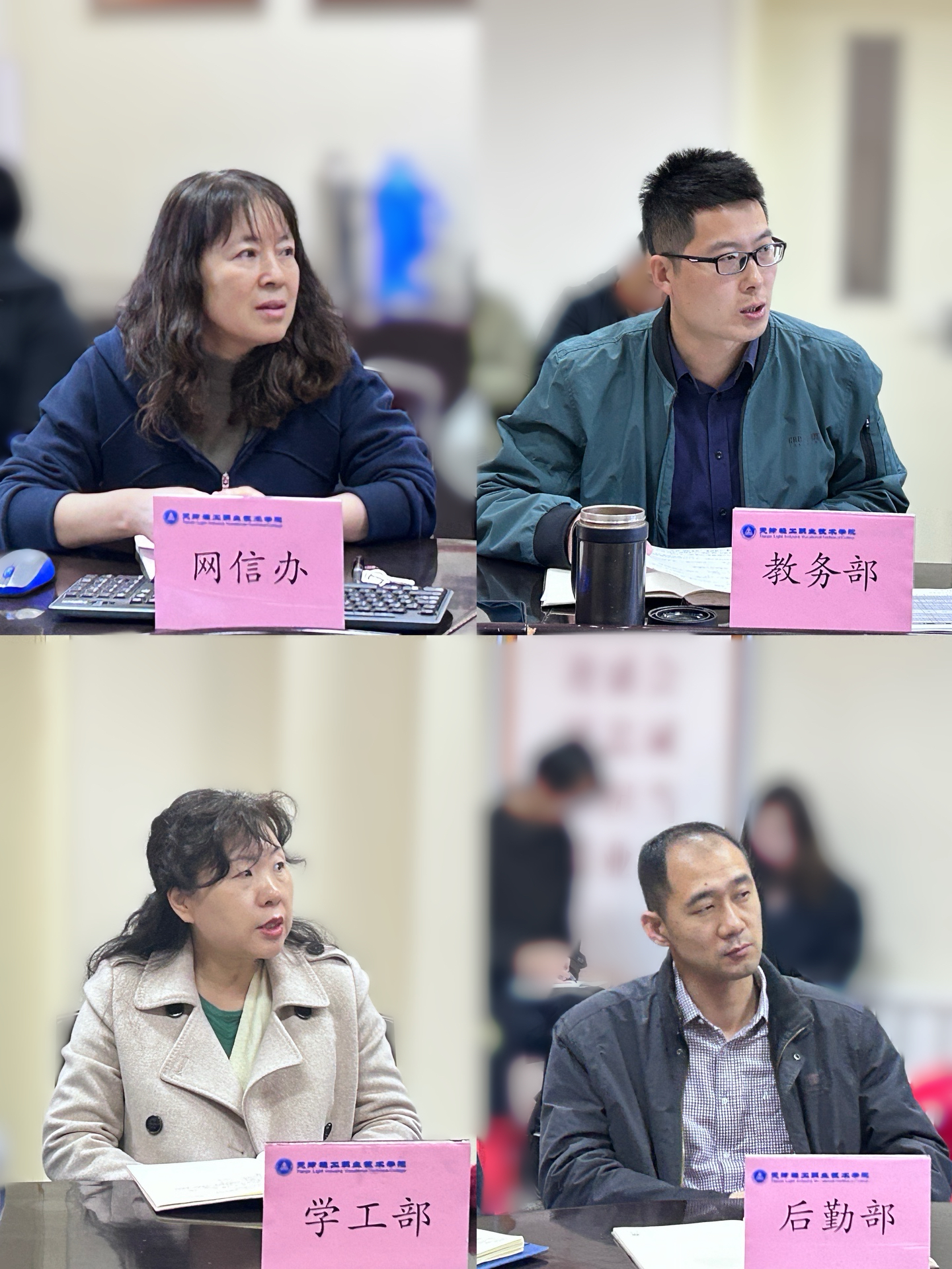 网信办负责人对我院全国职业教育智慧大脑院校中台数据上报情况进行了通报,从数据对接现状、对接详情展示、存在问题梳理、解决问题思路等几个方面进行展示与分析,同时对下一步工作推进、监督落实作了说明。接下来,教务、学工、后勤等部门分别就目前数据上报情况及存在问题作了沟通说明。