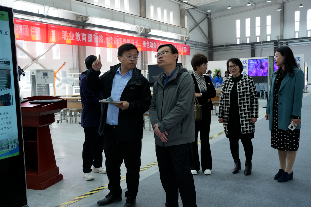 接着,赵院长一行前往新能源技术产教融合基地参观,对基地的规划布局和实训室建设等情况进行了深入了解。随后,赵院长一行参观了鲁班工坊建设·体验馆,听取了关于鲁班工坊的建设历程、内涵、成果等方面的内容介绍。