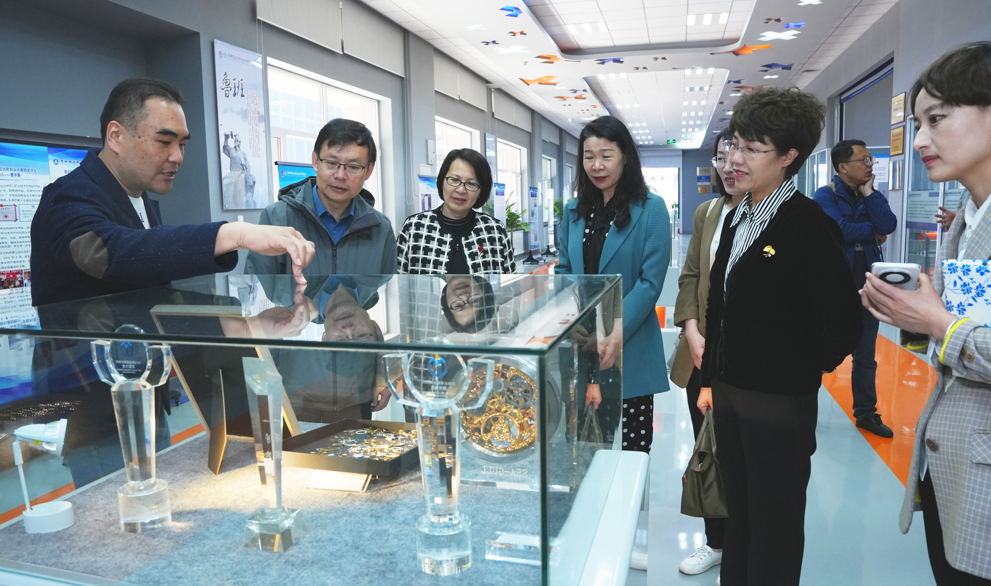 随后,赵院长一行参观了鲁班工坊建设·体验馆,听取了关于鲁班工坊的建设历程、内涵、成果等方面的内容介绍。
