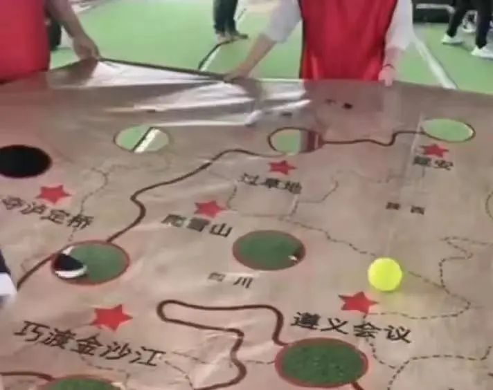 此活动比赛规则:操作过程中,所有成员必须双手拉住地图的边缘,手不得接触黄线以内区域。到达重要事件地点的唯一标志为球触碰该地点的五角星。网球在运行中如出现掉落的情况,则需从头开始,以最短时间为最终挑战成绩。