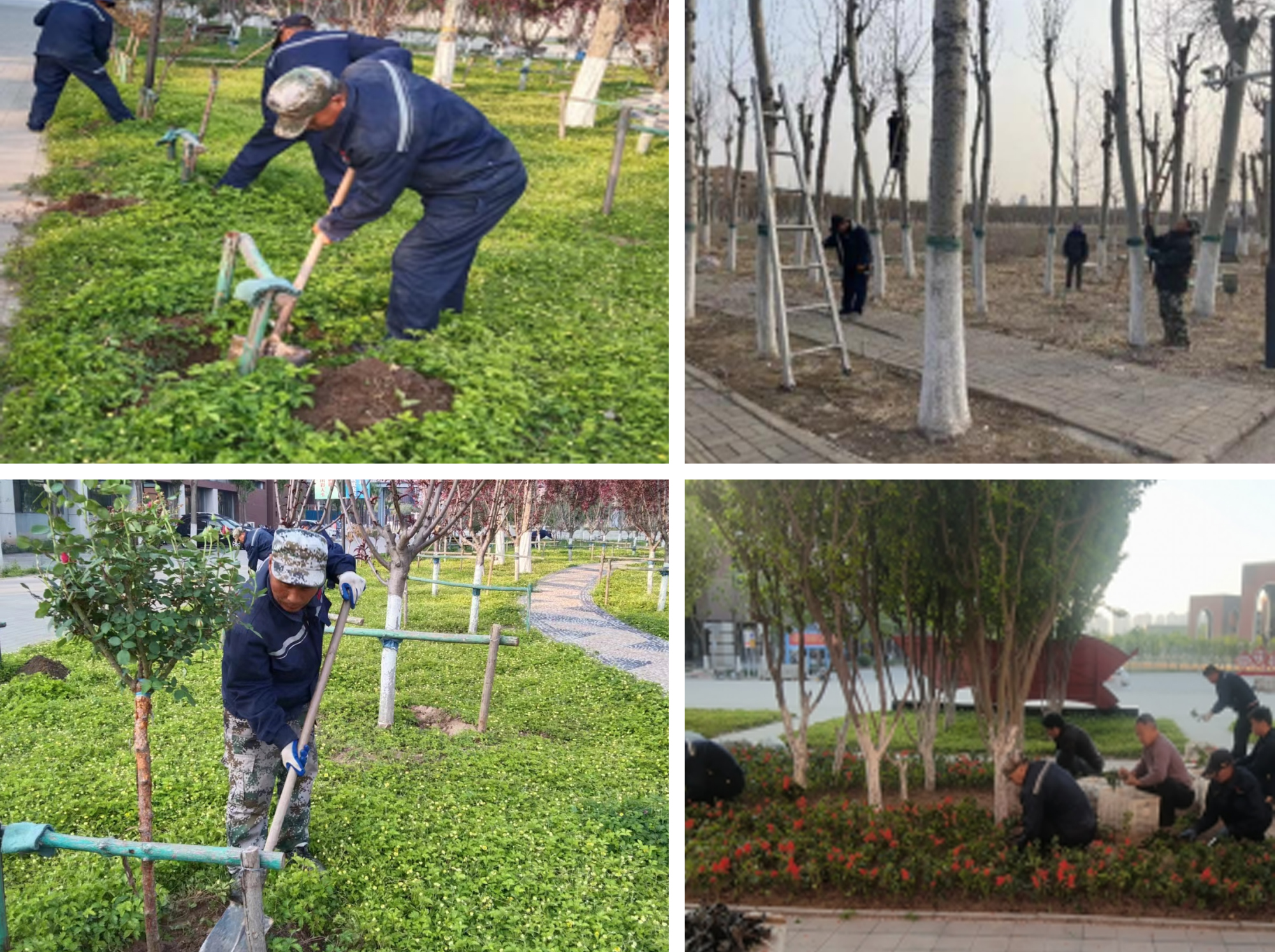 春季开学之际对校园周边乔木开展隐患排查,及时修剪枯枝、低矮枝,消除安全隐患;为全方位美化校园环境,提升绿化水平,近日在全校范围内进行苗木补植,治理裸露地面,在行政楼及二级学院门前补种马莲、玉簪、燕尾草等绿植3万株,共计1350平米;在图书馆东侧补种了35棵月季。在提升环境品质的同时,营造了良好校园氛围。