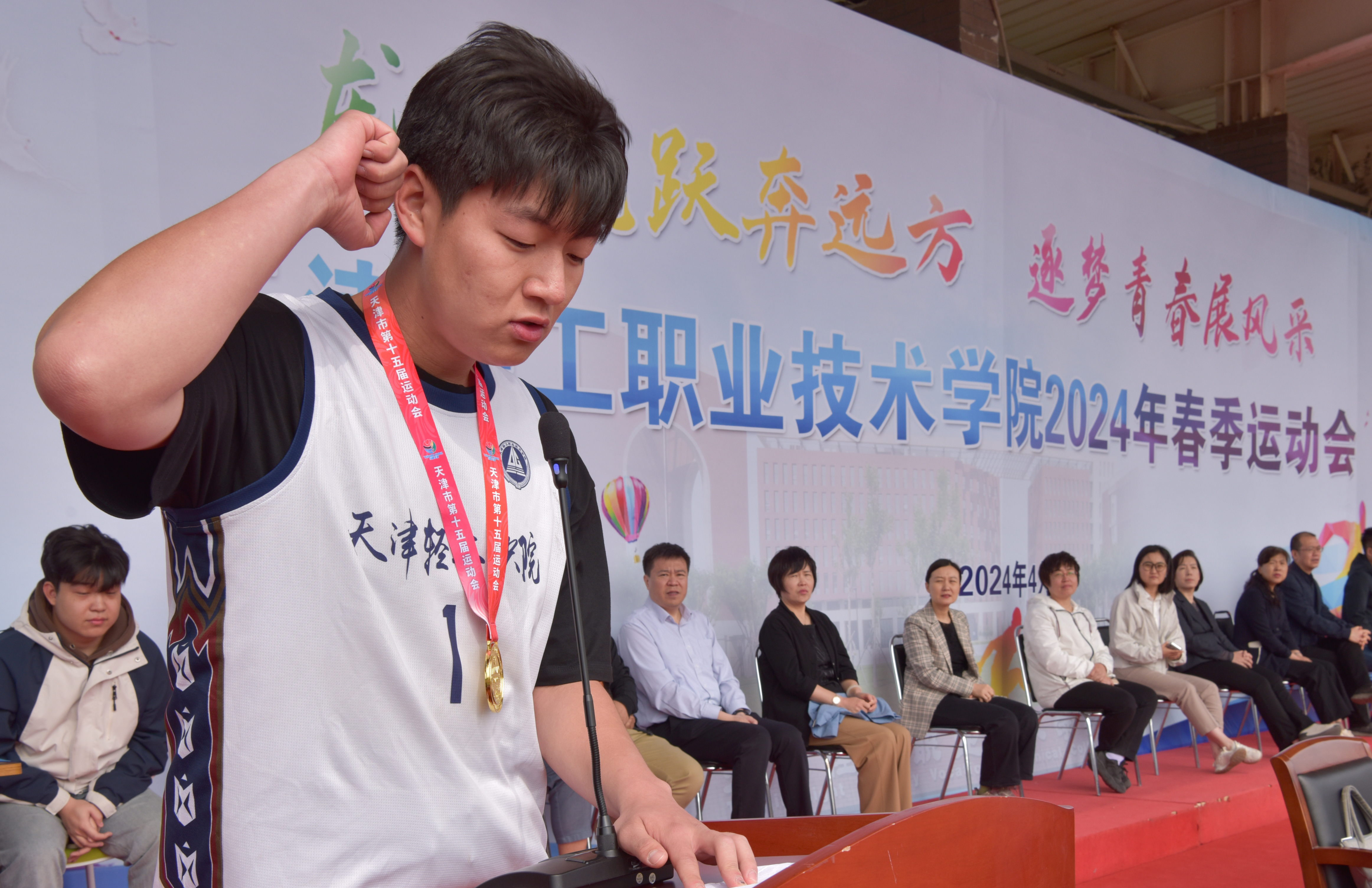 学院党委副书记、副院长李子铮主持开幕式。天津渤海轻工投资集团有限司纪委书记洪全印、津南区海棠街道办事处主任李伟、天津排球管理中心副主任、前天津女排运动员王茜、天津市山海关饮料有限公司党总支书记傅捷、上海三菱电梯华北大区维保部经理苑少军及相关媒体记者应邀参加。
