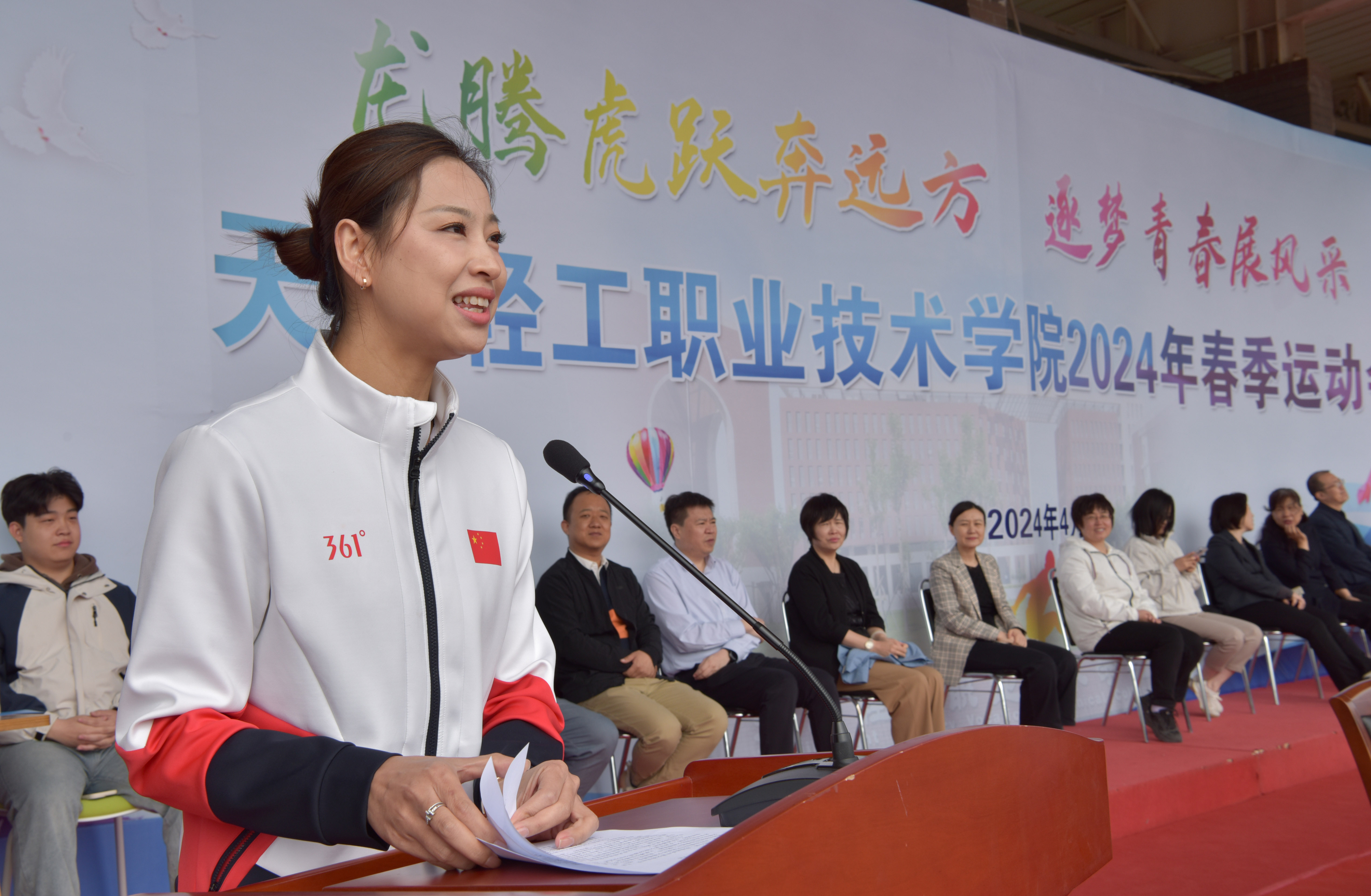 随后,学院党委副书记、院长李云梅致开幕词,她指出此次运动会是对学院体育发展水平的重要检阅;是学院良好校风、教风、学风的集中展示;是学院贯彻党的教育方针,推进体育教育的历程展示;是增强集体荣誉感、展示顽强拼搏精神和办学特色的运动盛会。希望全体师生朝着轻工4.0版本的教育愿景前行,坚持德智体美劳全面发展,敢于在体育竞技中披荆斩棘、奋勇争先,团结协作、顽强拼搏,以汗水擦亮中华体育精神,以实干激荡正能量!