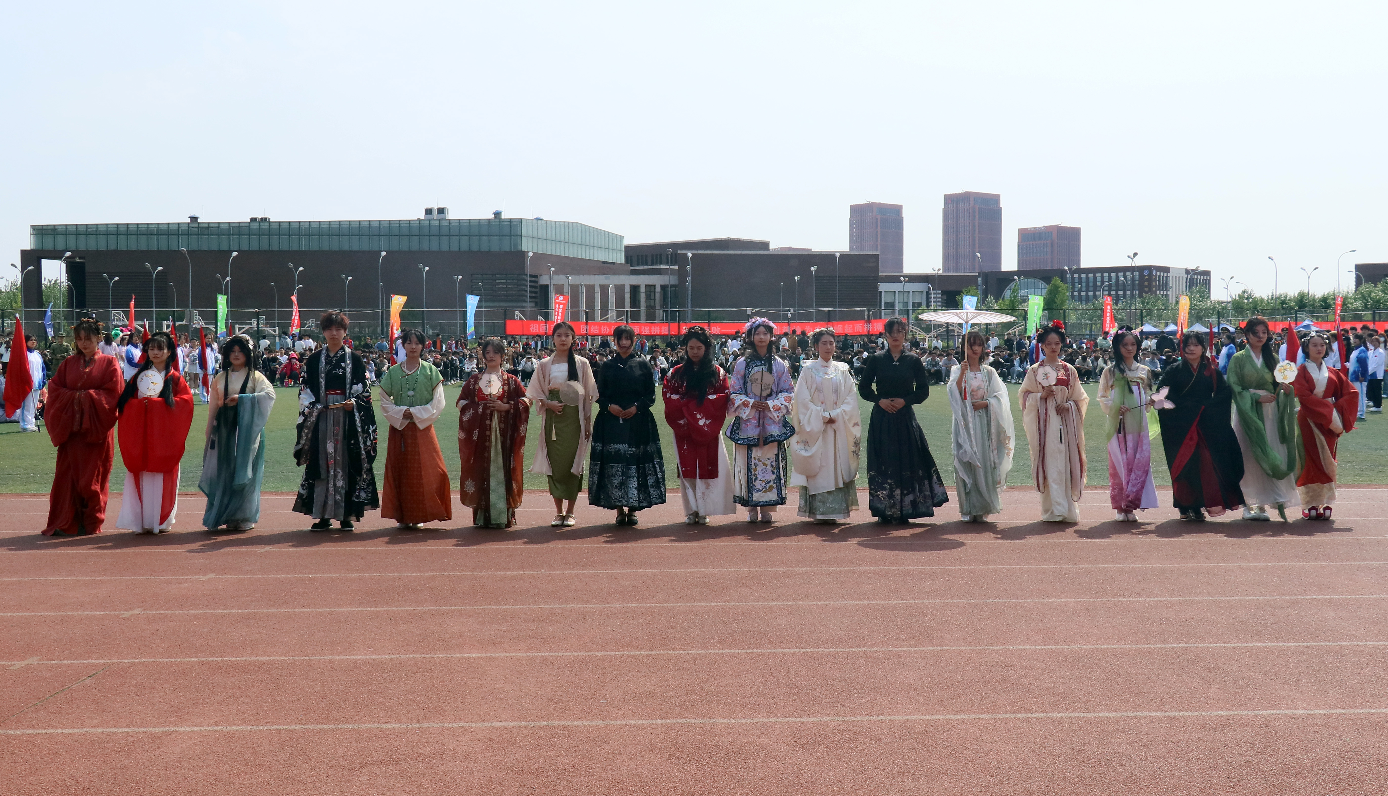 今年的方队队伍新增加了民族大团结方队和汉服方队,他们身着民族特色服装和华贵典雅的服饰,俨然成为学院一道亮丽的风景线,为运动会增添浓厚的文化氛围,使人眼前一亮。各方队入场后,全体参会人员起立,举行了升国旗仪式。