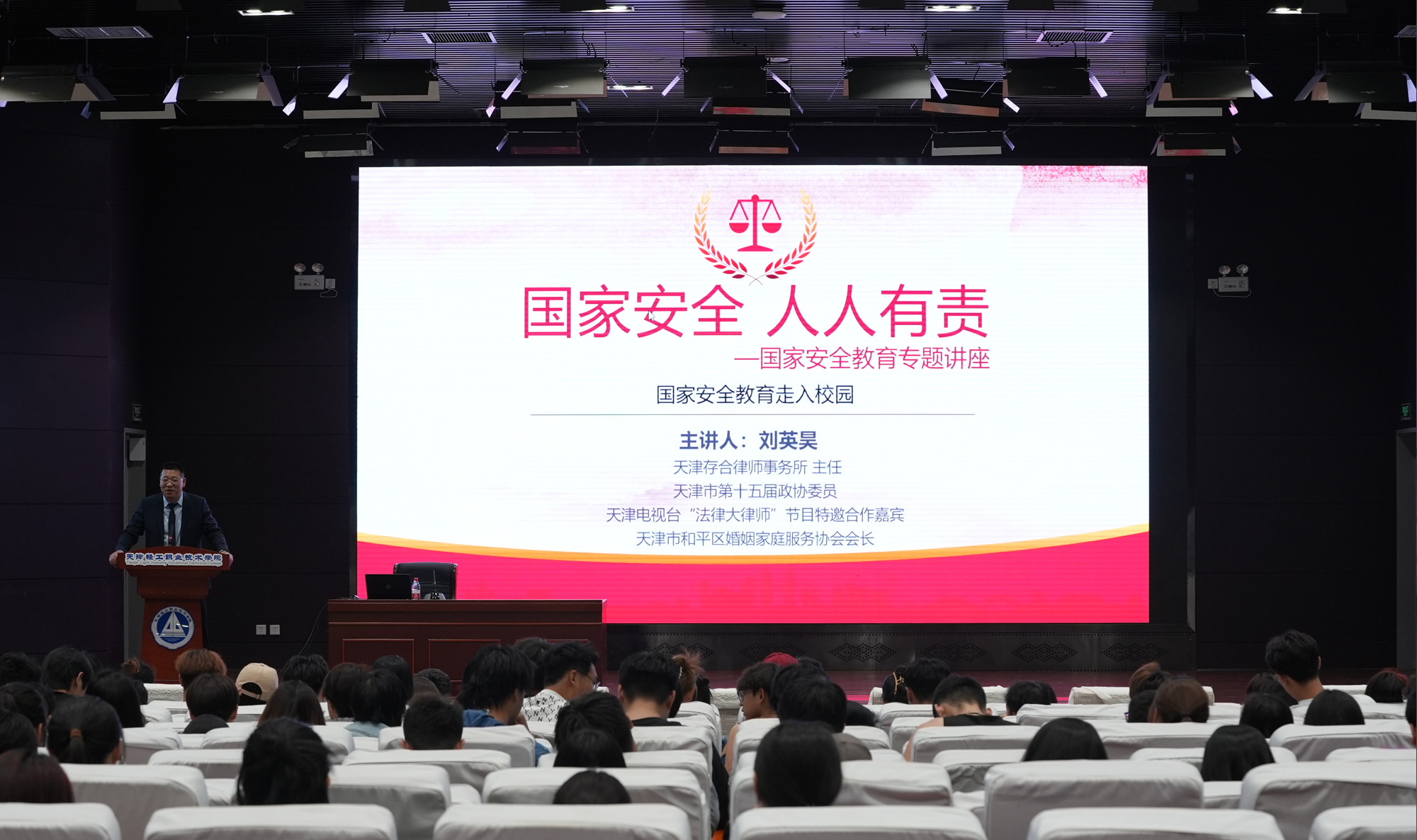 国家安全是民族复兴的根基,社会稳定是国家强盛的前提。今年正值总体国家安全观提出10周年,同时4月15日是我国第九个国家安全教育日。为了深入贯彻落实总体国家安全观,进一步提升广大师生的国家安全意识和法治素养,学院党委学生工作部开展了一系列宣传教育活动。其中,“总体国家安全观”国家安全教育专题讲座活动是系列教育活动之一,4月26日我院邀请了天津市第十五届政协委员、法律专家刘英昊老师为我院师生进行国家安全教育专题讲座。