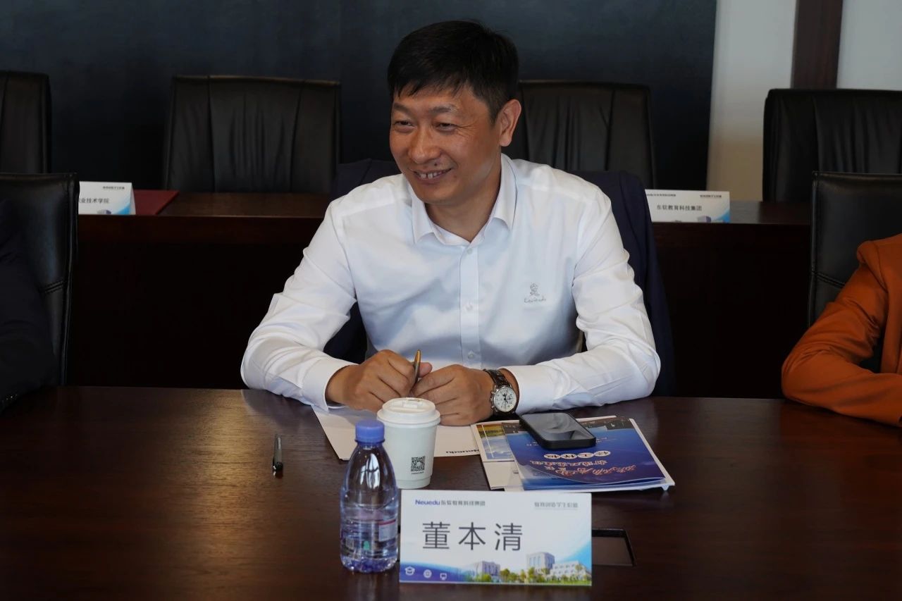 董本清副总裁在交流中,详细介绍了东软的产业布局以及发展历程。他表示,东软教育积极围绕数字经济及IT产业发展,依托自身的产业优势与办学积淀,在现代产业学院建设、数字产业人才培养等方面积累了丰富的经验,期待双方在未来的合作中,以TOPCARES特色教育方法学和强大的教育科技研发为牵引,打造一系列教学成果,我们致力于建设天津职业教育校企合作的典型示范样板。