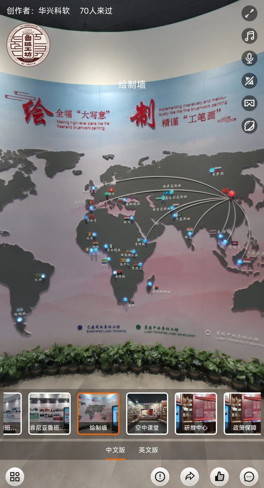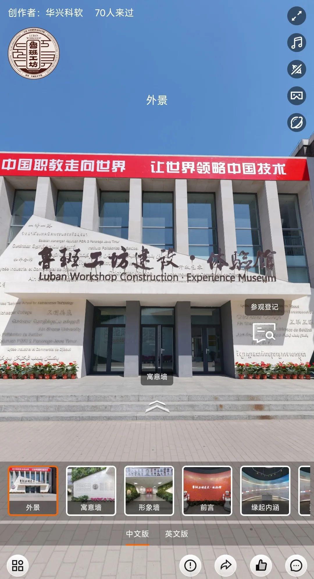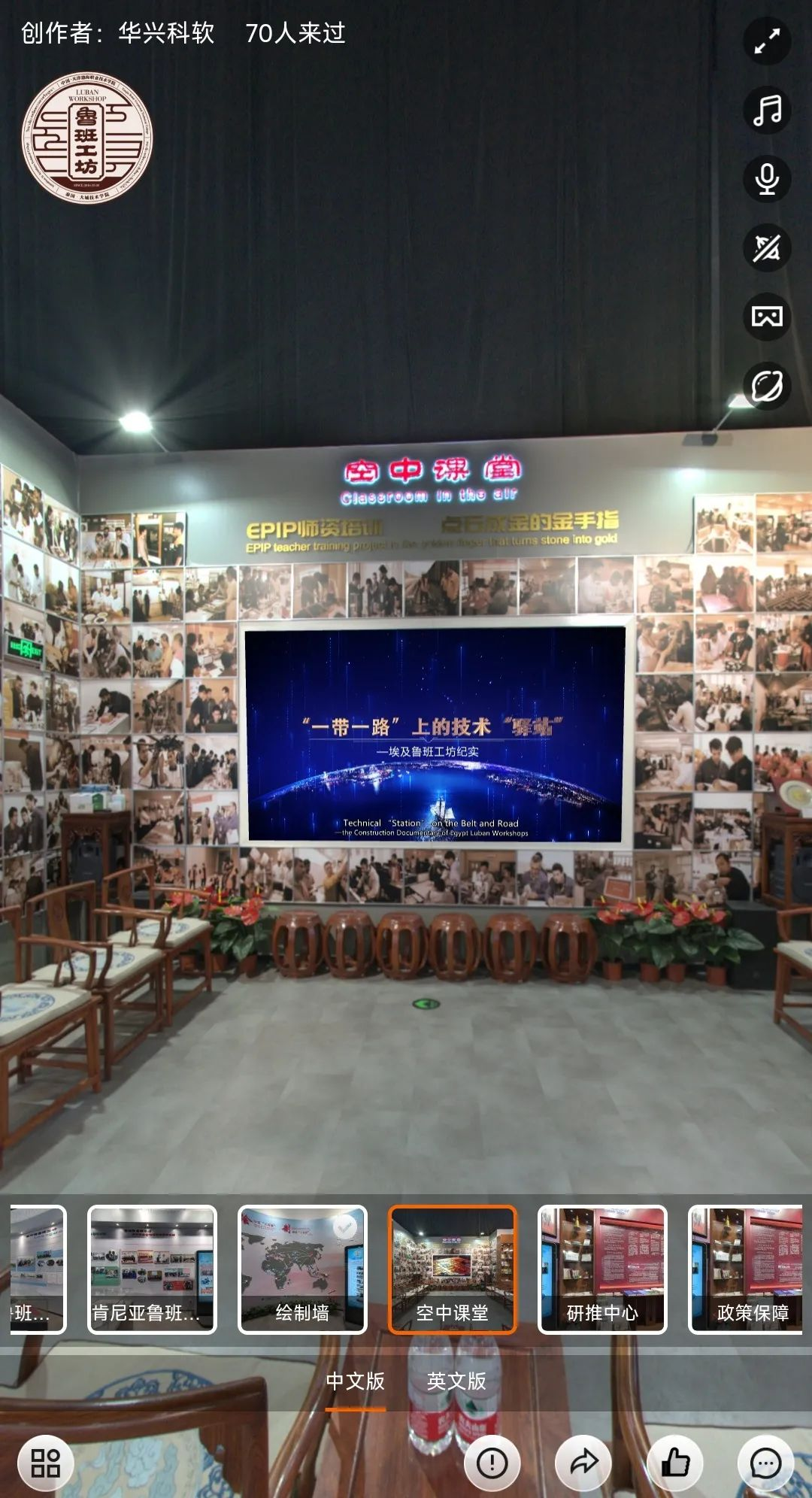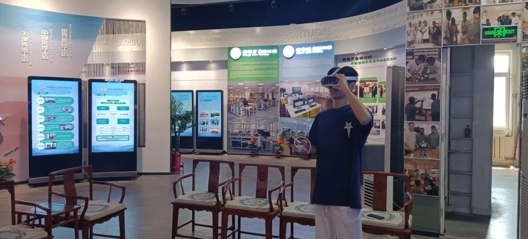 为进一步拓宽鲁班工坊建设·体验馆宣传推广的辐射范围,学院在天津市教委、天津市鲁班工坊研究与推广中心的指导下,自2020年10月启动鲁班工坊建设·体验馆在线展馆的开发制作工作。校企合作共同设计制作方案,确保鲁班工坊建设·体验馆在线展馆的展览展示效果。在线展馆采用VR实景拍摄技术,对鲁班工坊建设·体验馆实体展馆进行全方位拍摄,通过分模块及插图等形式进行细节展示;展馆同步配有背景音乐及中英文解说,方便中外参观者在浏览过程中进一步了解鲁班工坊建设的详细情况;通过设置“来访登记”“满意度调查”等参观互动功能,提升在线展馆的使用体验感。此外,本次同期活动中,展馆内还增设了“VR畅游埃及鲁班工坊”的体验活动,来访者通过佩戴VR眼镜,“沉浸式”参观坐落于开罗的埃及鲁班工坊,以VR全景体验的方式走进海外鲁班工坊。线上“云端”浏览、VR“沉浸式”体验与线下实体参观的同步推进,为来访者提供多样化参观途径的同时,增强了参观鲁班工坊建设·体验馆的便捷性和趣味性。