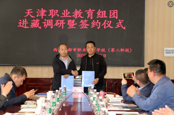 在校校、校企签约环节。天津职业技术师范大学、新利18平台、天津生物工程职业技术学院、天津城市建设管理职业技术学院、天津第一商业学校先后和西藏昌都职业技术学校签订了校际东西部战略合作协议,天津圣纳科技有限公司、北京智启蓝墨信息技术有限公司、山西华兴科软有限公司分别和西藏昌都市职业技术学校签订了校企合作协议。各院校和企业均向西藏昌都市职业技术学校捐赠了图书、教材平台、新能源观光车等物品,此次捐赠物品价值共计人民币100余万元,为昌都职校专业发展建设提供了支撑。
