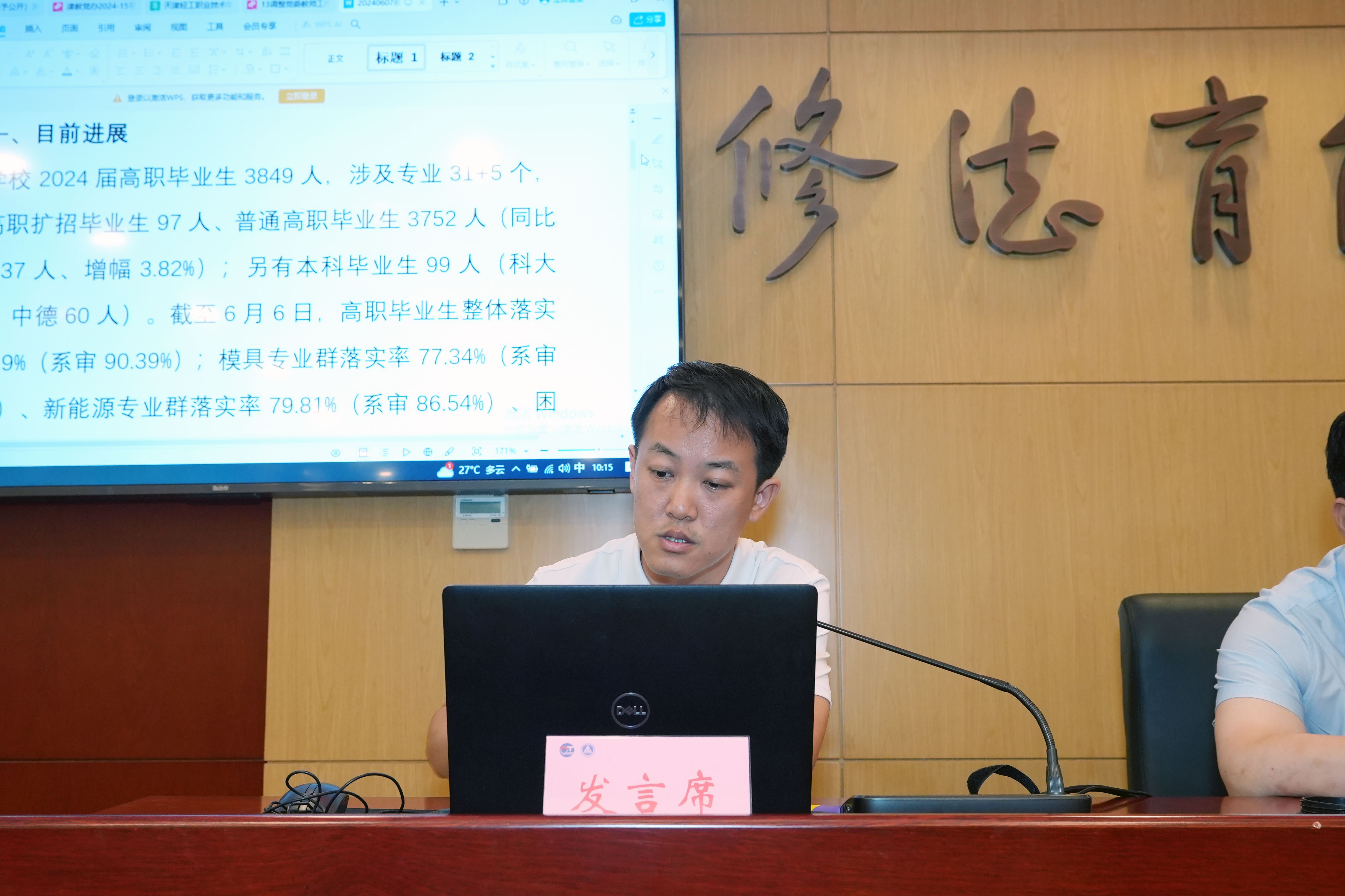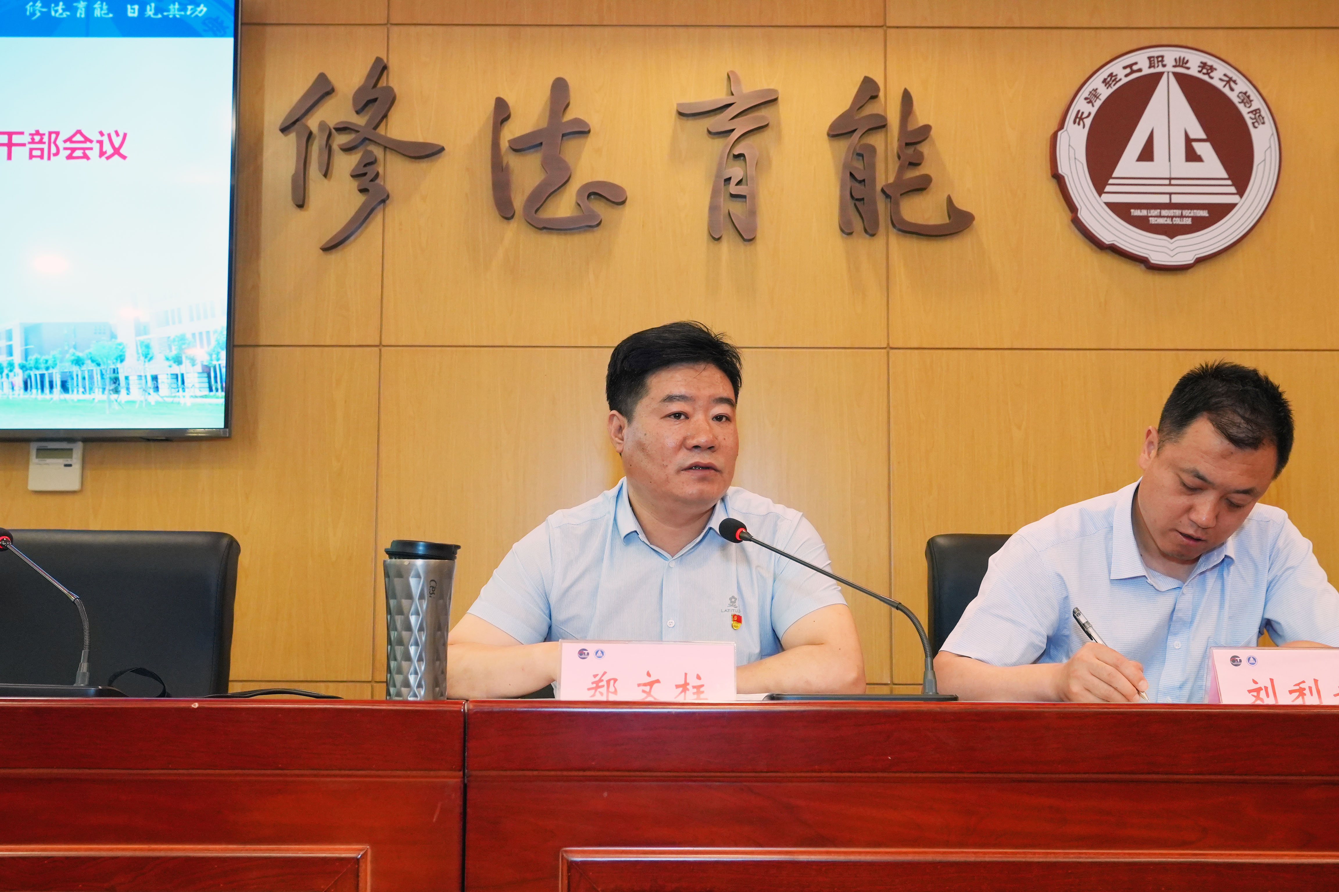 党委副书记、院长李云梅作会议总结,并提出三点要求:一是要坚守“三条底线”,全方位防范化解安全风险隐患。务必以党纪学习教育为契机,教育引导广大党员干部严格遵守“六大纪律”,强化意识形态底线、廉洁自律底线和校园安全底线思维,持续统筹好安全稳定与事业发展。二是要践行实干担当,全身心履职尽责保障各项工作落地见效。持续深化学习贯彻习近平总书记提出的四个“善作善成”重要要求,主动对标市委、市政府和上级部署,在服务新质生产力发展、推动京津冀协同发展、助力东西部协作和乡村振兴等重大战略方面走深走实,在服务学生全面发展、以及精细化管理和内涵提升等方面切实增强主体意识、责任意识。三是紧盯目标差距,以超常规举措确保重点任务高效推进。年中在即,要严格梳理全年重点任务落实情况,提炼出特色亮点,查找差距不足,为下半年工作打好基础,蓄好力,同时要以一往无前的决心、锲而不舍的耐心、更加务实的态度、更加严格的要求,全力推进职教本科申办具体工作。