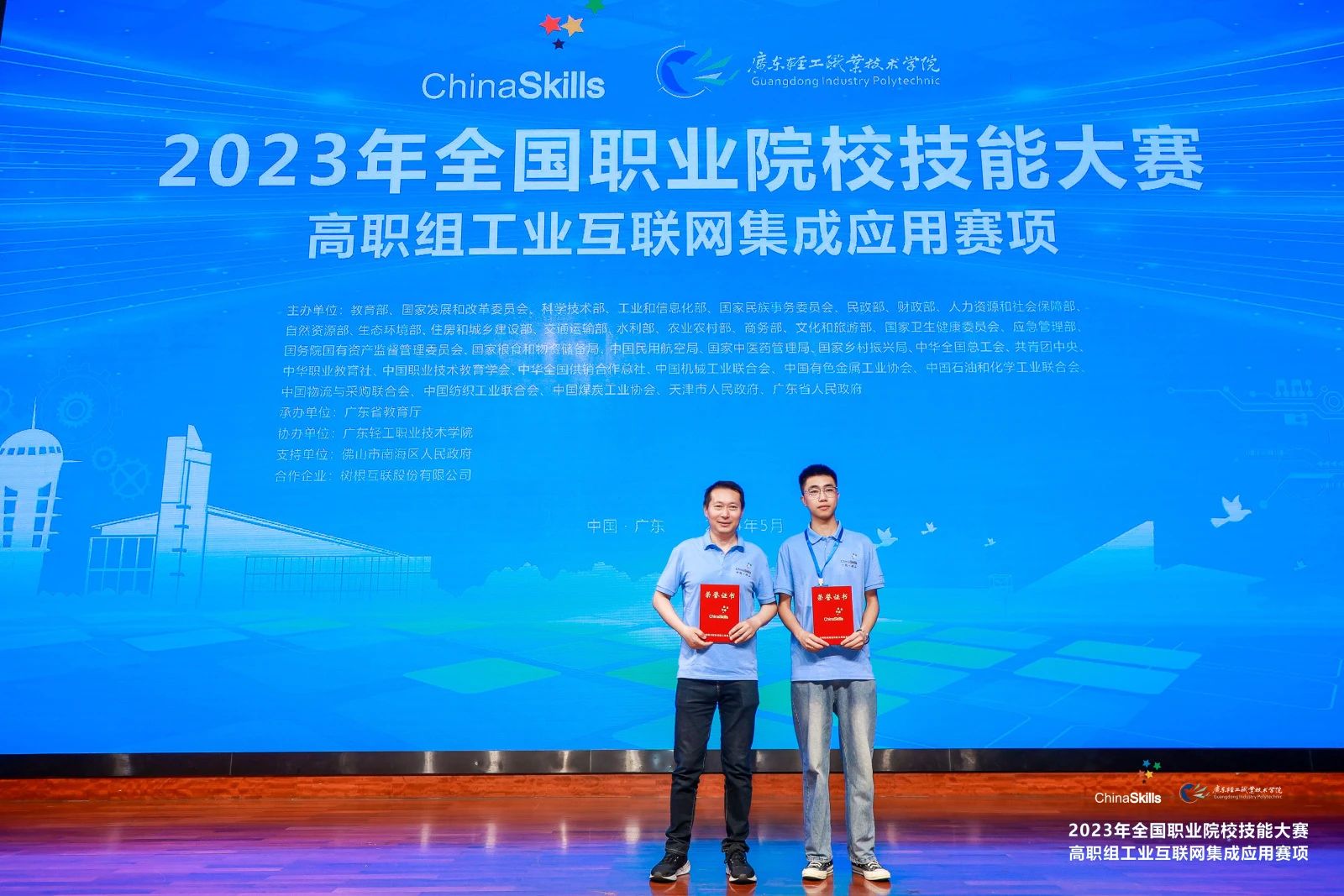 本次工业互联网集成应用赛项为师生同赛,比赛内容涵盖工业互联网设备安装、设备调试、数据采集系统及应用、标识解析系统集成应用、边缘计算及数据可视化应用、工业互联网应用平台服务开发,重点检验选手工业互联网标识解析系统部署,工业大数据采集处理、进行可视化展示,工业应用软件需求分析、功能设计、开发调试等专业核心能力。比赛历时两天,师生密切配合,展现出过硬的专业素养,最终获得三等奖。