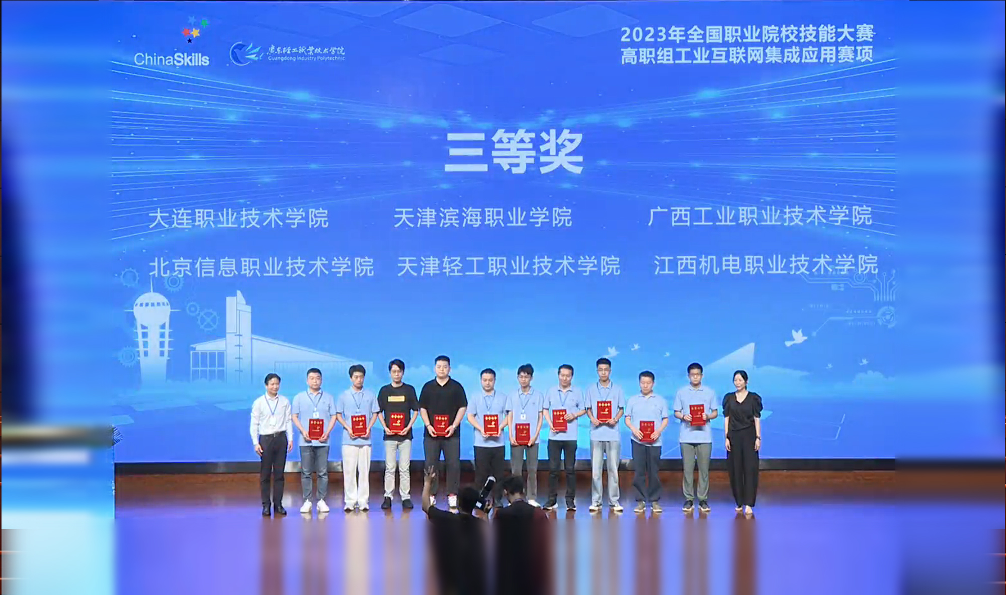 5月28日,2023年全国职业院校技能大赛高职组工业互联网集成应用赛项在广东轻工职业技术学院举行,我院电子信息与自动化学院李娜副院长带队,教师张杰、学生段智坤代表天津市参赛,与来自全国各省、自治区和直辖市共57支队伍同场竞技。