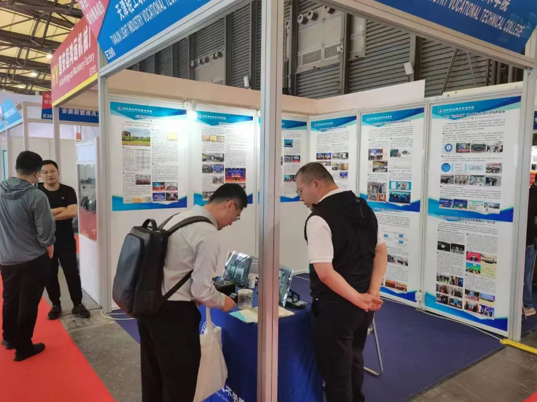 会议期间,学院还参加了2024年度上海国际模具技术与设备展览会,本次展览不仅展示了学院双高建设期间取得的成绩和模具产业学院的建设情况,同时通过与全国模具企业的交流为学院模具专业群今后的发展瞄准方向。通过为期四天的展会交流,学院与多家企业建立联系并初步达成合作意向。展会期间,中国模具行业协会会长常世平、天津市模具工业协会秘书长王振云、天汽模研究院院长王金葵、天津世亚模具股份有限公司董事长林世大和天津翔铄车身科技有限公司董事长赵洪森等企业人员莅临指导,学院模具专业群建设取得的成果获得了中国模具行业协会相关领导及众多模具企业的高度关注和好评。