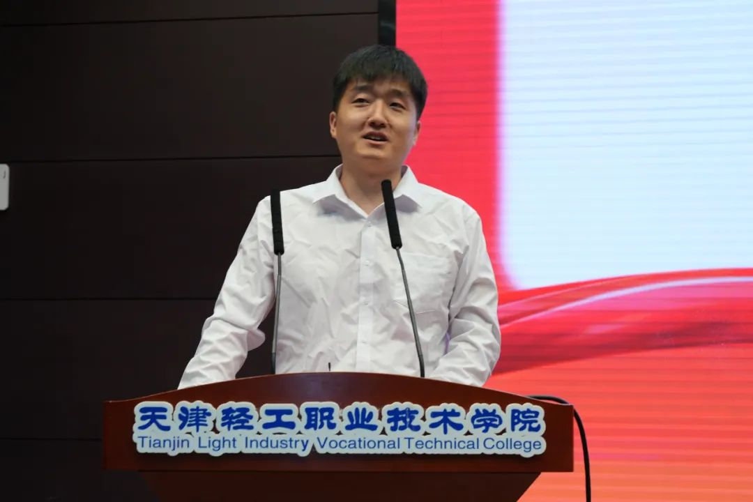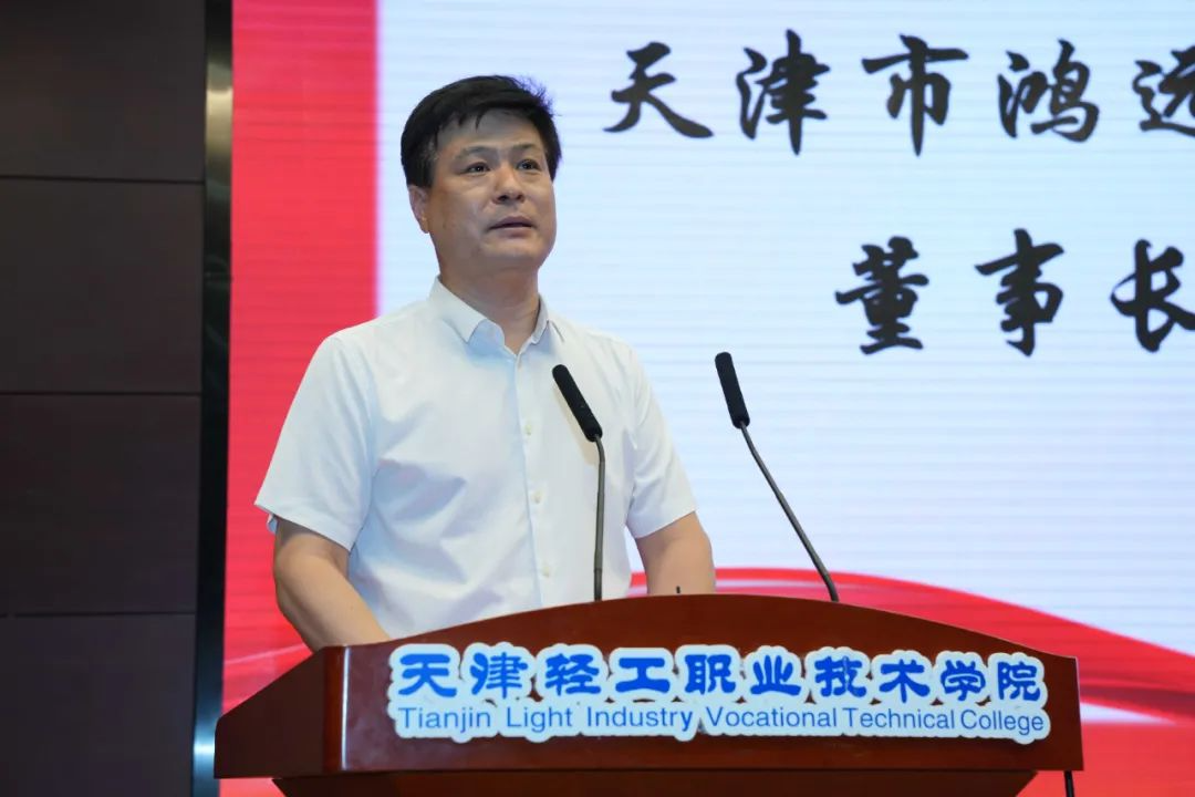 企业代表天津市鸿远电气股份有限公司董事长兼总经理鲁涛先生,深情回顾了公司与学院之间深切的合作历程,他对我院教育事业的蓬勃发展寄予了深厚的期望,期待未来能共同培养出更多优质人才。