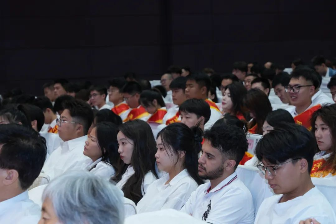 往届优秀毕业生代表武哲伟和2024届优秀毕业生代表苏家修作为学生代表,也发表了感人肺腑的讲话。他们在轻工走过青葱岁月,也见证了轻工的高质量发展。一朝“轻工”人,一生“轻工”情,是对母校的感激之情和对未来的美好憧憬。还有很多未能赶到现场的优秀校友和退休教师,以视频的形式表达了对毕业生们的深深祝福和期望。