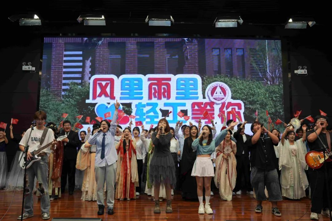 毕业季歌曲串烧《三曲漫步·阳光少年游》将现场的气氛推向了顶点,即使离别,也将如花般绽放,轻工学子将勇敢地展翅翱翔。精彩的演出赢得了在场师生的阵阵掌声和喝彩!
