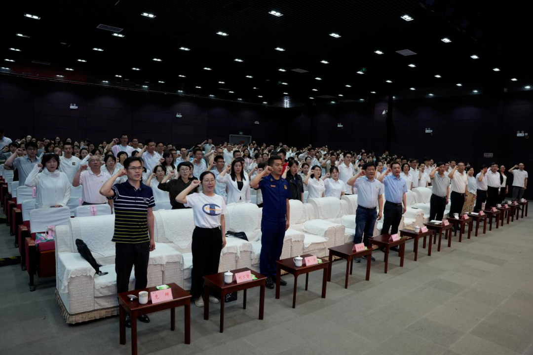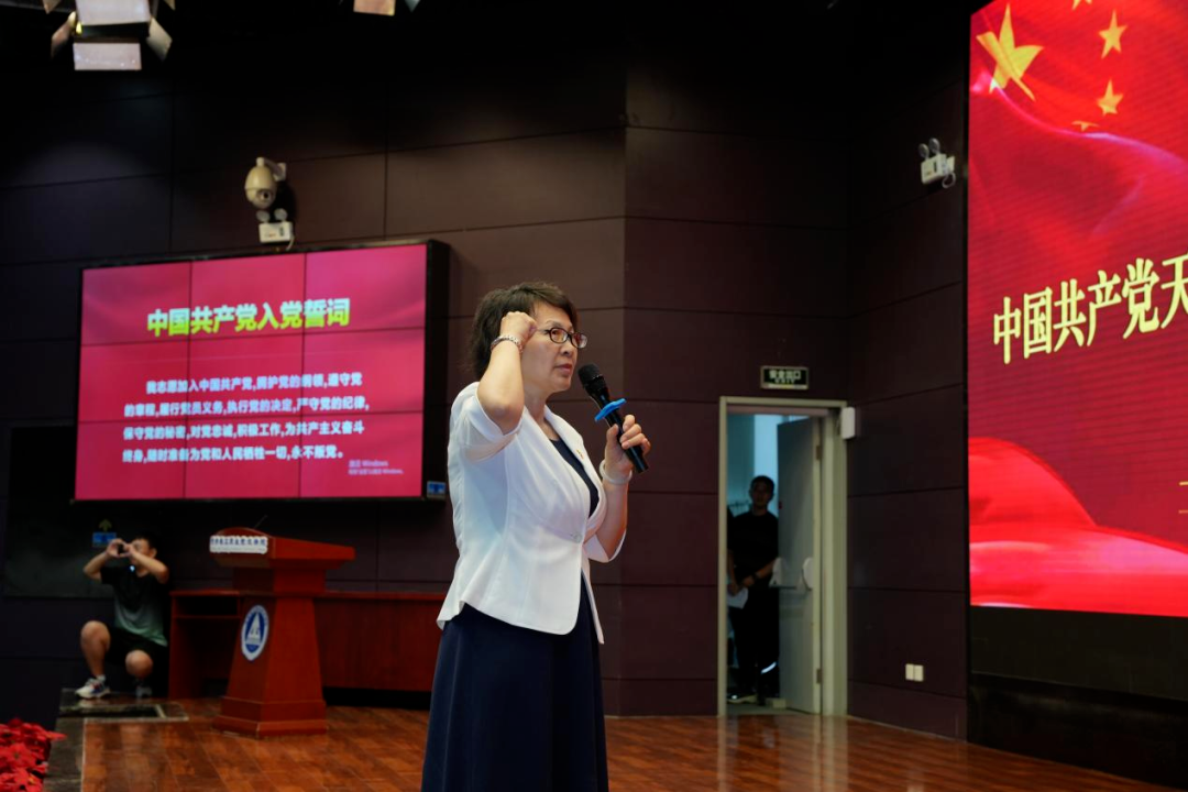 最后,学院党委副书记、院长李云梅同志带领参会全体党员一起面向党旗重温入党誓词,在铿锵有力的誓词中,重忆入党初心,激励全体党员更加坚定理想信念、牢记初心使命。
