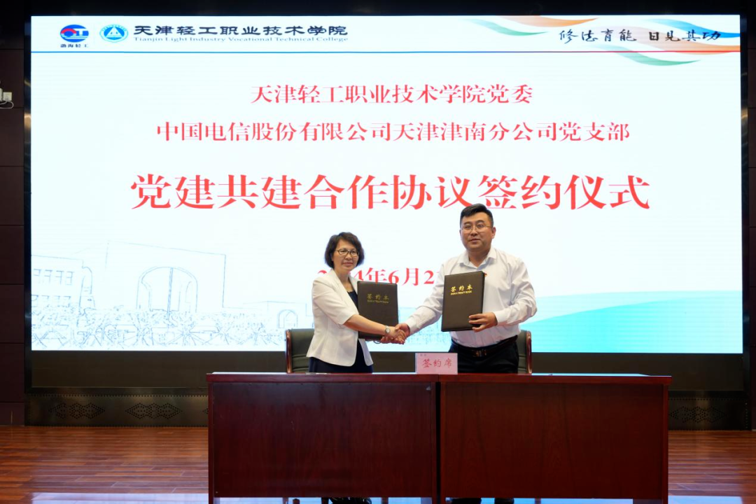 在本次活动中,学院党委副书记、院长李云梅同志代表学院党委分别与天津隆兴集团党委和中国电信津南分公司党支部签署了党建共建协议,在提升党员教育质量、赋能专业群建设、为培养技术技能型人才提供要素支撑、打造产教融合项目、搭建教师实践平台、拓展实习就业渠道等方面开展深度合作,为贯彻落实习近平总书记关于扎实推动教育强国建设、促进高质量充分就业等重要指示精神,不断加强党组织凝聚力,打造党建工作新格局打下坚实基础。