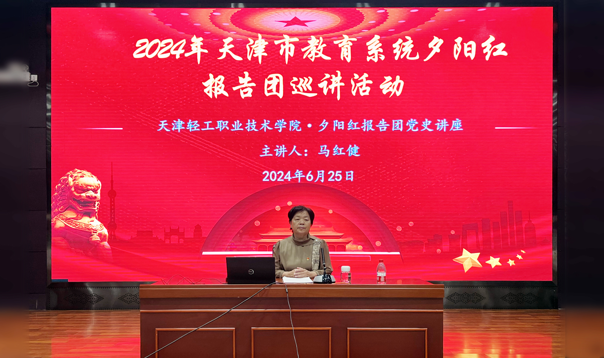 6月25日下午,新利18平台2024年天津市教育系统夕阳红报告团党史学习教育宣讲活动在我院多功能报告厅举行。天津市教育系统夕阳红报告团成员、天津理工大学关心下一代工作委员会副主任、“老马思政工作室”负责人马红健应邀到我院宣讲。会议由党委学生工作部部长马延宏主持,我院两百余名师生代表到场听取讲座。