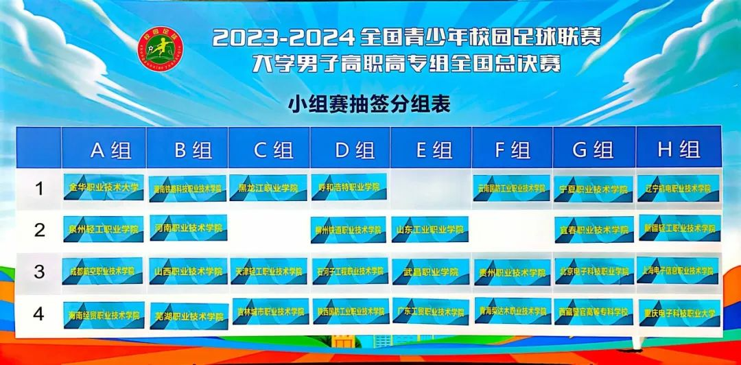 6月22日上午,由教育部主办、中国学生体育联合会执行、中国学生体育联合会高职院校工作委员会协办、国家体育总局秦皇岛训练基地(中国足球学校)承办的2023-2024全国青少年校园足球联赛大学男子高职高专组全国总决赛在秦皇岛训练基地开赛。