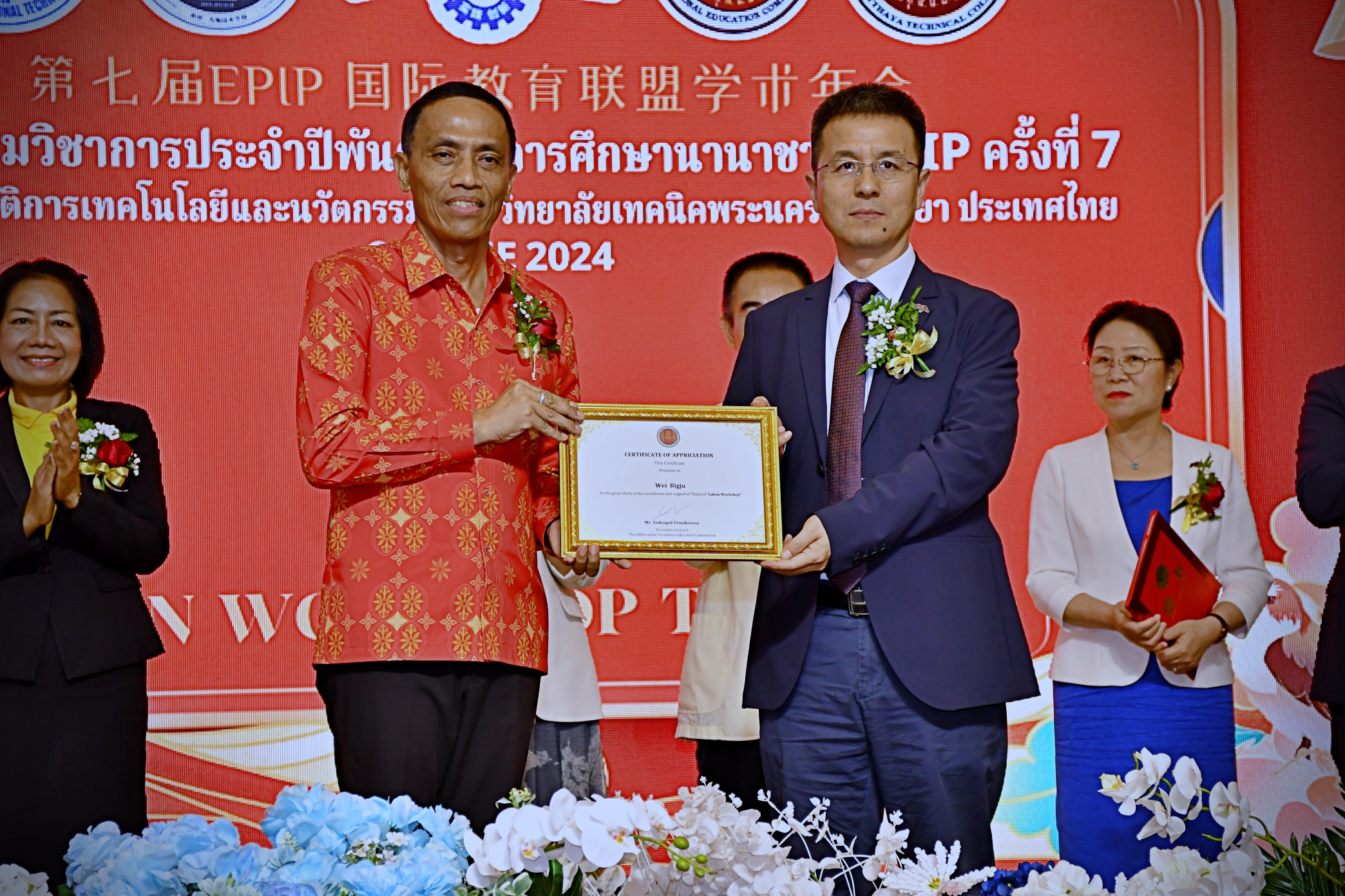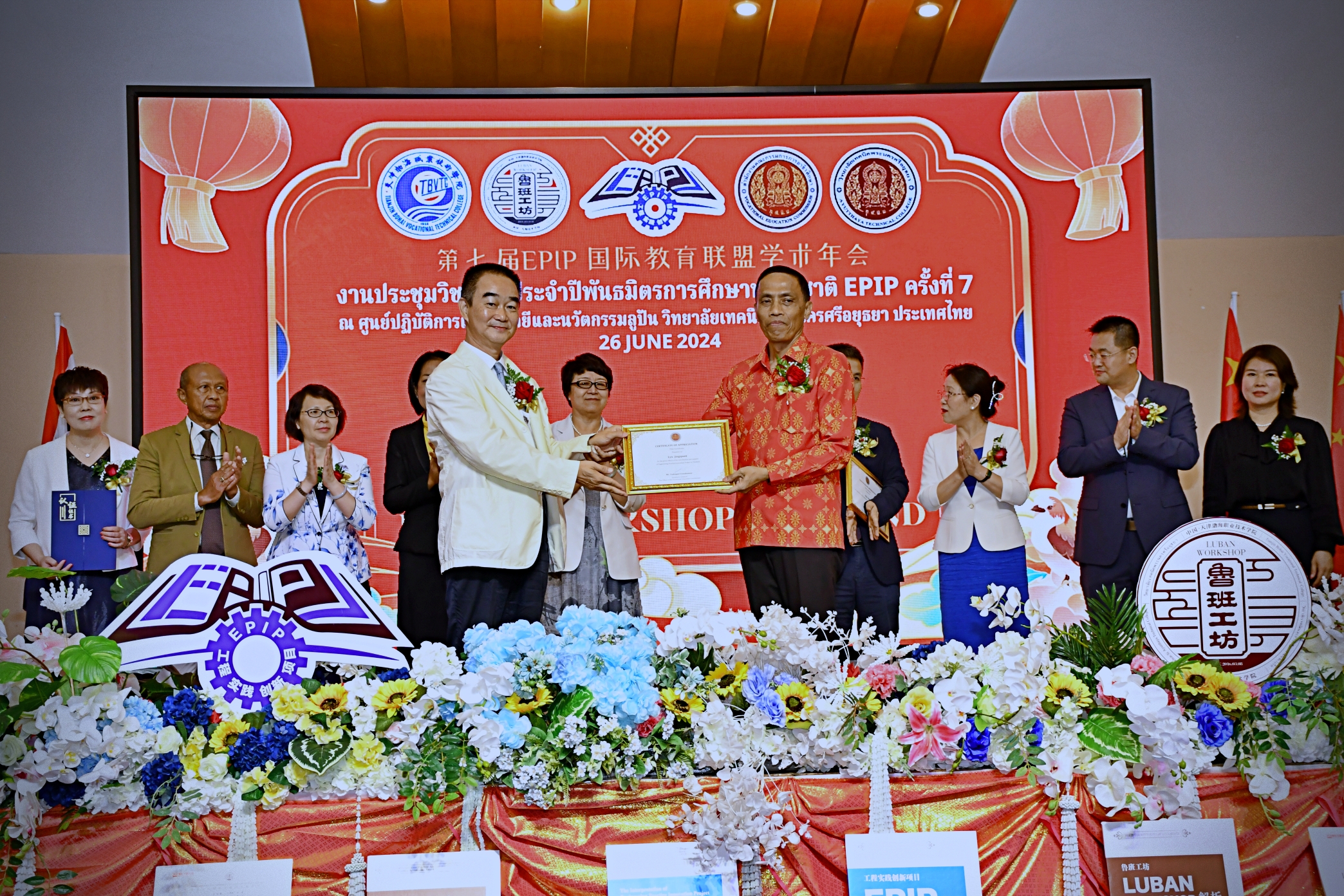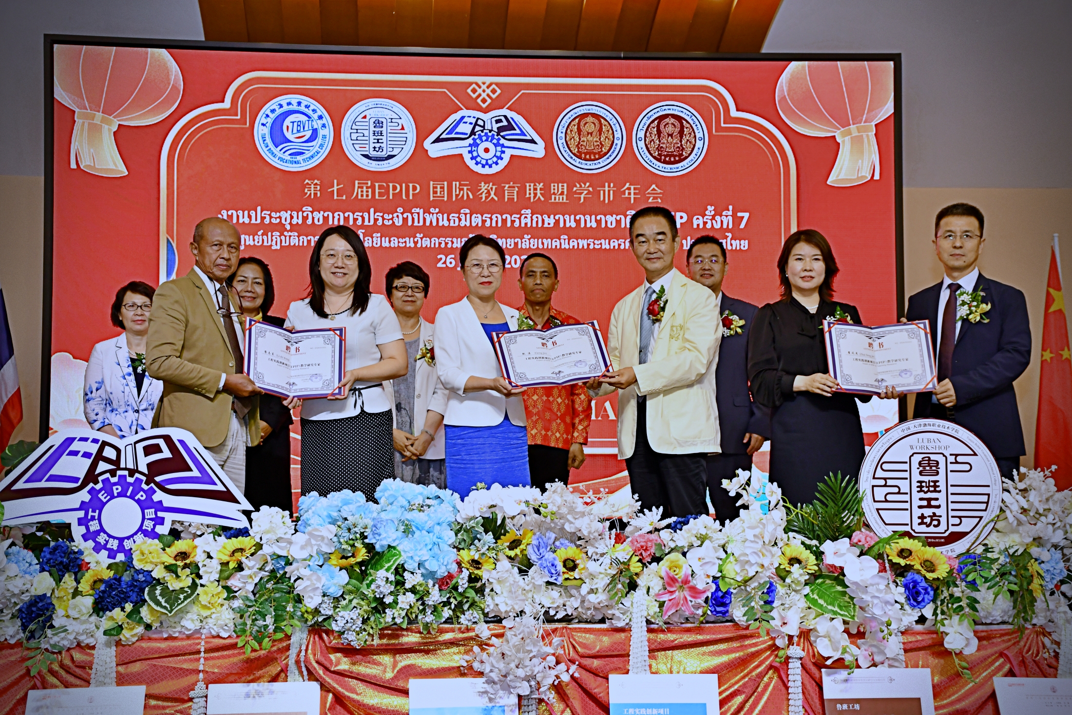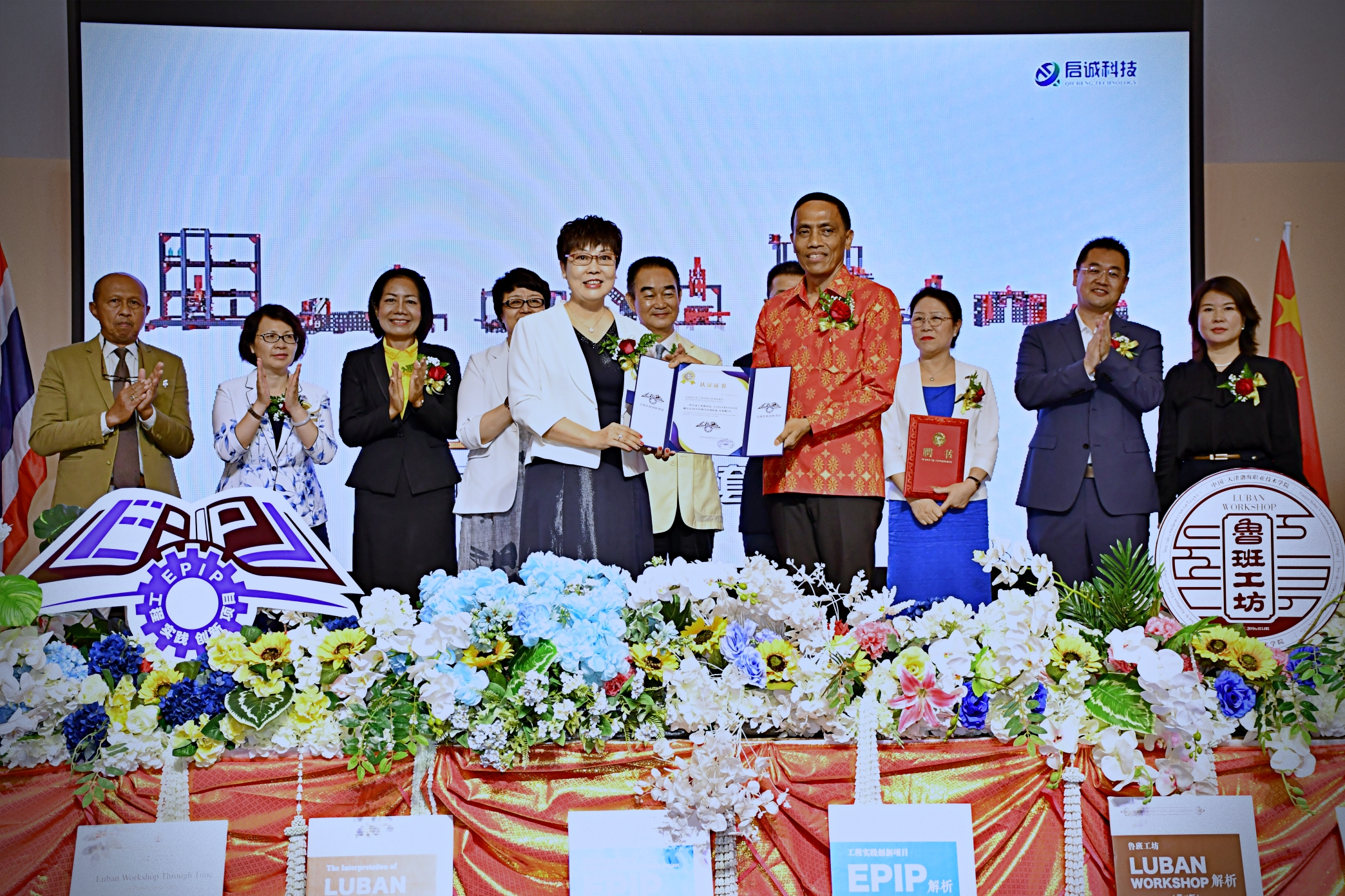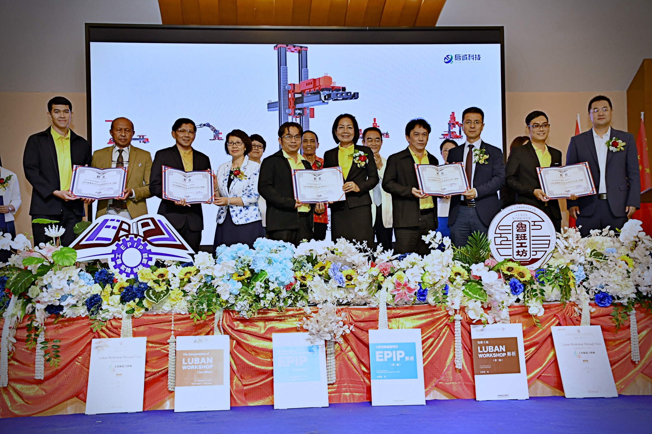 会上,宋鹏·邦丹代表泰国教育部职业教育委员会(VEC)为吕景泉颁发了EPIP推广特别贡献奖,为魏炳举颁发了泰国鲁班工坊特别贡献奖。此外,英文版著述研究成果《工程实践创新项目(EPIP)解析(第二版)》《鲁班工坊(LUBAN WORKSHOP)解析(第二版)》《鲁班工坊纵览与博观》已经发布;宋鹏·邦丹、吕景泉共同为泰国工程实践课程EPIP认证试验中心挂牌;耿洁、黎志东、翟风杰被聘任为工程实践创新项目(EPIP)教学研究专家;宋鹏·邦丹为“启诚能力源”工程实践创新课程套件颁发课程与教学装备认证证书;会上聘任苏伟拉等5名泰国鲁班工坊教师为泰国工程实践课程EPIP认证试验中心骨干教师。