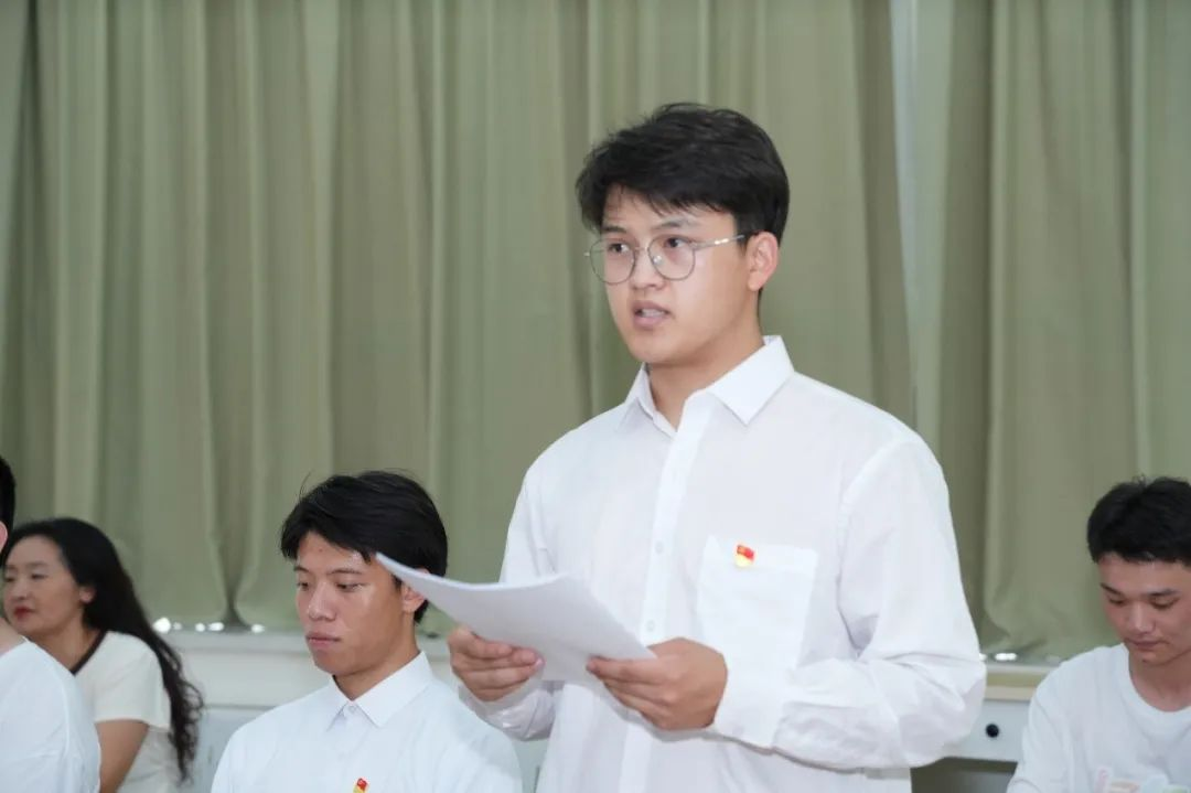 机械工程学院22级数控技术301班岳磊同学作为新党员代表发言,他表示今后一定会始终牢记党的宗旨和使命,积极投身实践,以党员纪律严格要求自己,充分发挥党员的先锋模范作用;虚心向老党员和先进典型学习,不断完善自我、超越自我,会以更加饱满的热情、更加坚定的信念、更加扎实的作风投入到未来的工作和学习中去,为实现中华民族伟大复兴的中国梦贡献自己的青春和力量!