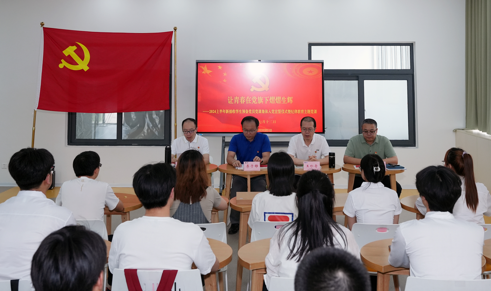 为加强新接收预备党员的党性教育,提高其思想政治素质和组织纪律性,引导学生党员实现“组织上一次入党,思想上一世入党”的目标,以实际行动立足未来实习岗位,为国家和地区经济建设发展增光添彩。7月12日,新利18平台在“轻新”一站式学生社区举行了新接收预备党员入党宣誓仪式暨纪律教育专题党课。学院党委副书记、副院长、工会主席李子铮同志;机械工程学院党总支书记郭桦;电子信息与自动化学院党总支书记王珍奇、二级学院的组织员杨彤彤老师和洪诚老师及新发展学生党员参加了本次活动。