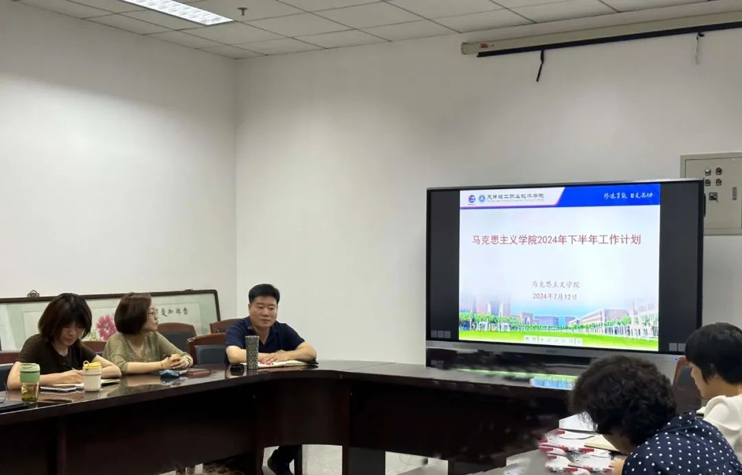 会议伊始,马院实岗锻炼干部赵亚娟首先围绕比赛、科研、宣讲、服务四个方面对马院上半年重点工作进行了全面梳理。在马院教师共同努力下,上半年圆满完成各项任务,取得了较好的成绩。截至目前,在比赛方面荣获全国二等奖2项、天津市一等奖2项、三等奖3项、局级一等奖1项;在科研课题方面获得省部级1项、局级7项、校级11项立项;围绕“四个善作善成”面向学院党支部、社区、中小学累计开展21次宣讲,一致获得好评。其次,赵亚娟围绕思政课程故事化改革、校级教学成果奖申报等六个方面进行暑期工作部署。