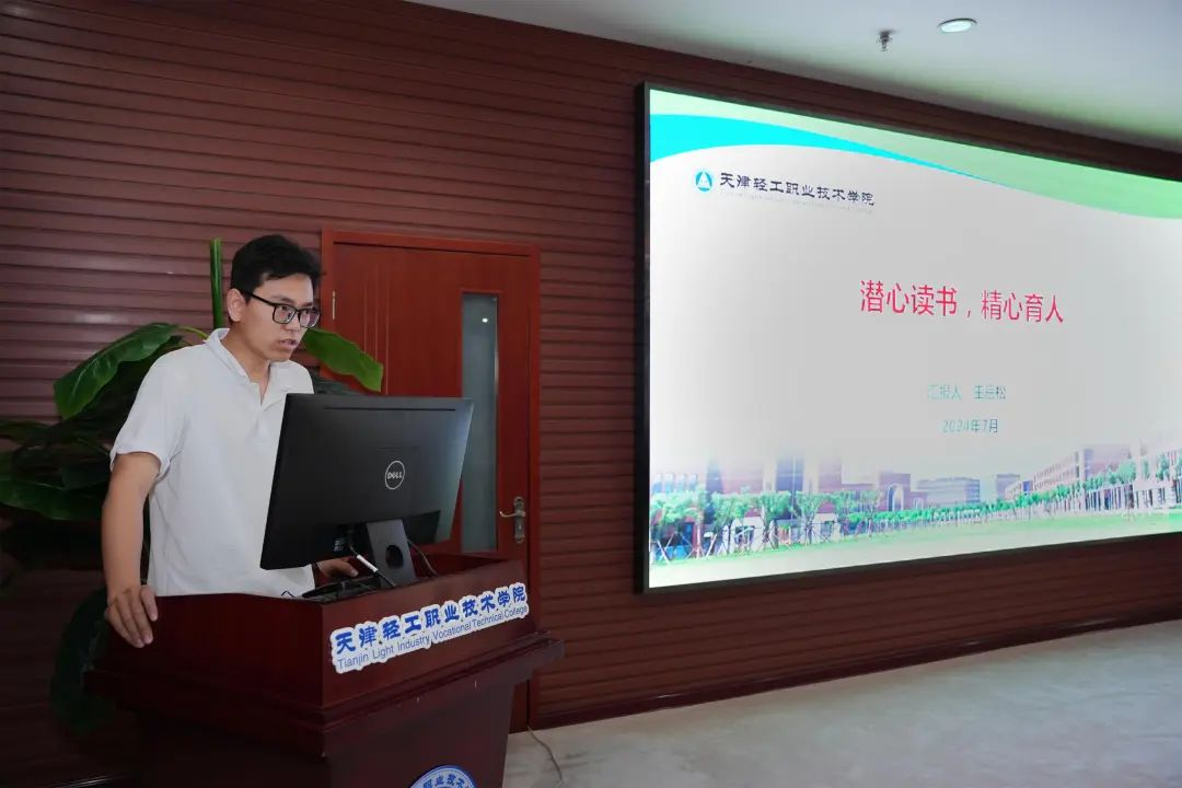 党委副书记、副院长李子铮讲话,他表示两位老教师的分享体现了把学院发展作为自身成长进步的起因,个人成长会越来越好,越走越远;同时,轻工学院作为一所高质量高水平的赛道和平台,借助好的平台,自身也会得到迅速提升。新教师要奋发图强,走好自己的路,做好自己的事,珍惜当下,活出精彩,贡献力量。他对新教师提出三点要求,一是有目标,不迷茫。教师是学生传道授业的引路人,更是学生学习的榜样。新教师要设立目标,努力实现,始终饱有满腔热情,不断学习不断进步。二是重积累,不浮躁。在工作中既要埋头苦干,也要抬头看路。时代在不断变化,新教师不仅要实现教书育人的初心和使命,也要静得下心、沉得住气,要牢记“业精于勤荒于嬉,成于思毁于随。”努力在工作中汲取养分,积蓄力量。三是修品行,养师德。新教师要明大德、守公德、严私德。同时正确对待一时的成败得失,受挫而不短志,摆正心态,坚守正义,严守师德底线。