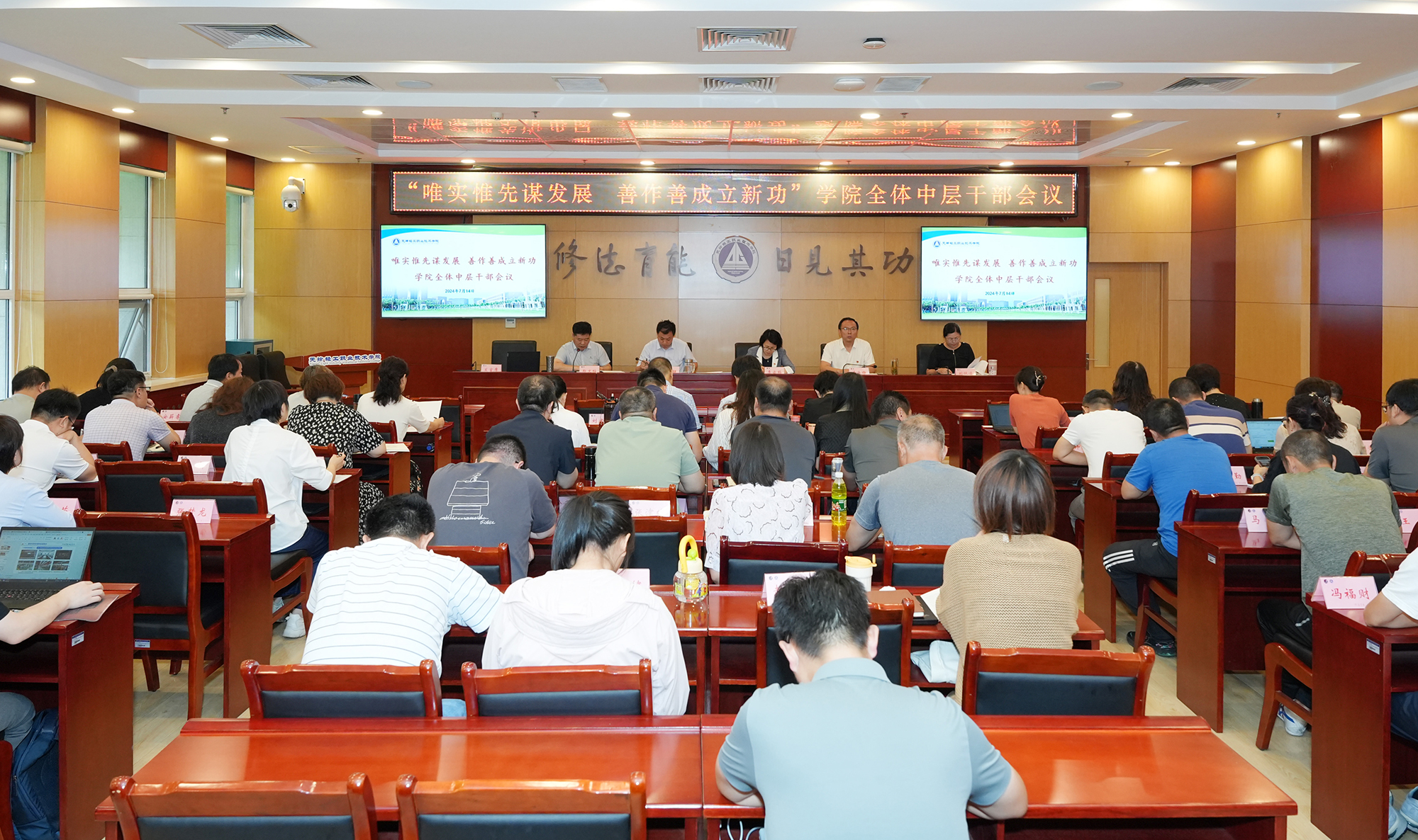 7月14日,学院召开了主题为“唯实惟先谋发展 善作善成立新功”的全体中层干部会议,全体领导班子成员、全体中层干部和实岗锻炼干部参加会议。会议由党委副书记、副院长李子铮主持。