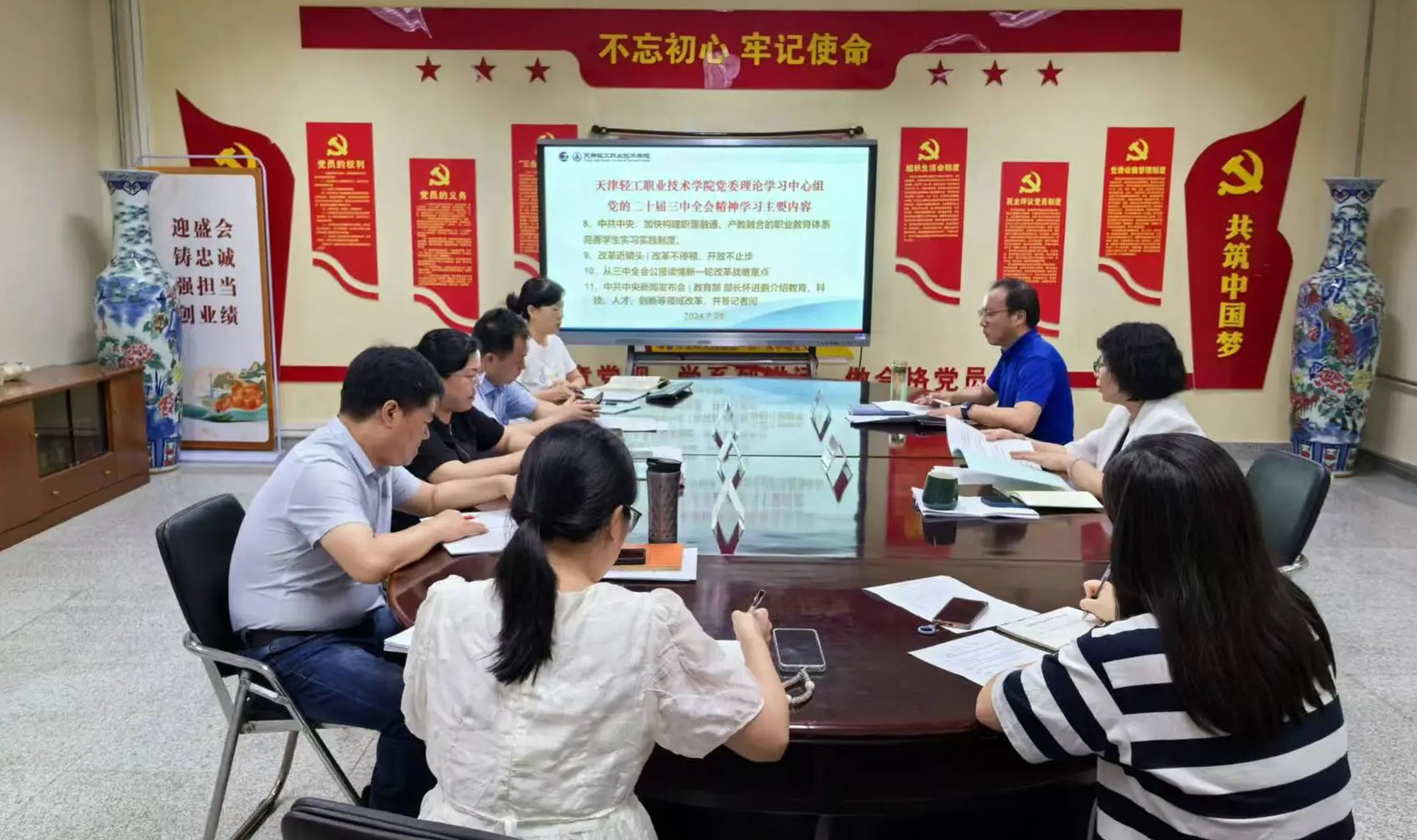 会议深入学习了中国共产党第二十届中央委员会第三次全体会议公报、《中共中央关于进一步全面深化改革、推进中国式现代化的决定》、习近平关于《中共中央关于进一步全面深化改革、推进中国式现代化的决定》的说明等内容,特别就涉及职业教育和党的建设有关内容进行了学习讨论,并跟进学习了习近平总书记近期重要讲话、论述和指示批示精神。