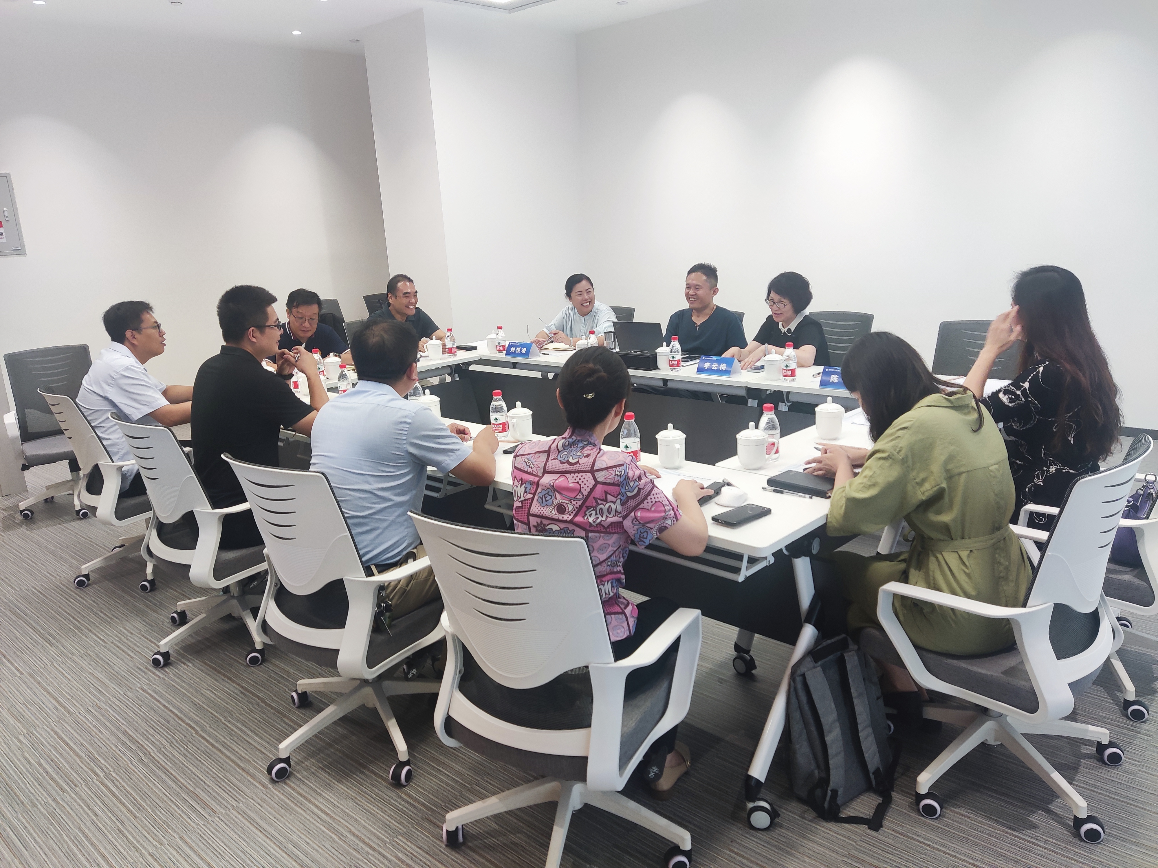 在交流环节中,科研部部长王春媚、校企合作与培训部部长白洁、新利直营官网首页入口电话指导中心实岗锻炼干部丁玮及其他教师与专家就海教园大学科技园的建设、共建产业学院、联合参与创新竞赛等诸多项目进行了研讨并达成了共识。