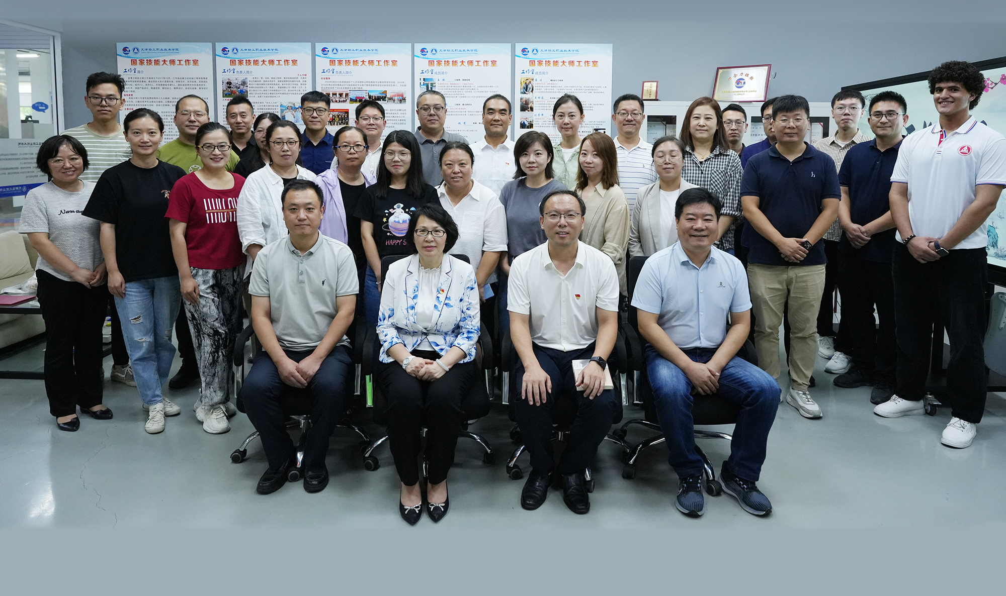 院领导班子与机械工程学院师生亲切交流,为老师们送去祝福。院长李云梅与我院毕业生,现任天津汽车模具股份有限公司车间主任田立虎互赠礼物,并勉励田立虎做好校企合作的桥梁,多为产教融合贡献力量。李院长还慰问了在校留学生,关心学生在华生活,鼓励学生在校勤奋学习,增长技能。